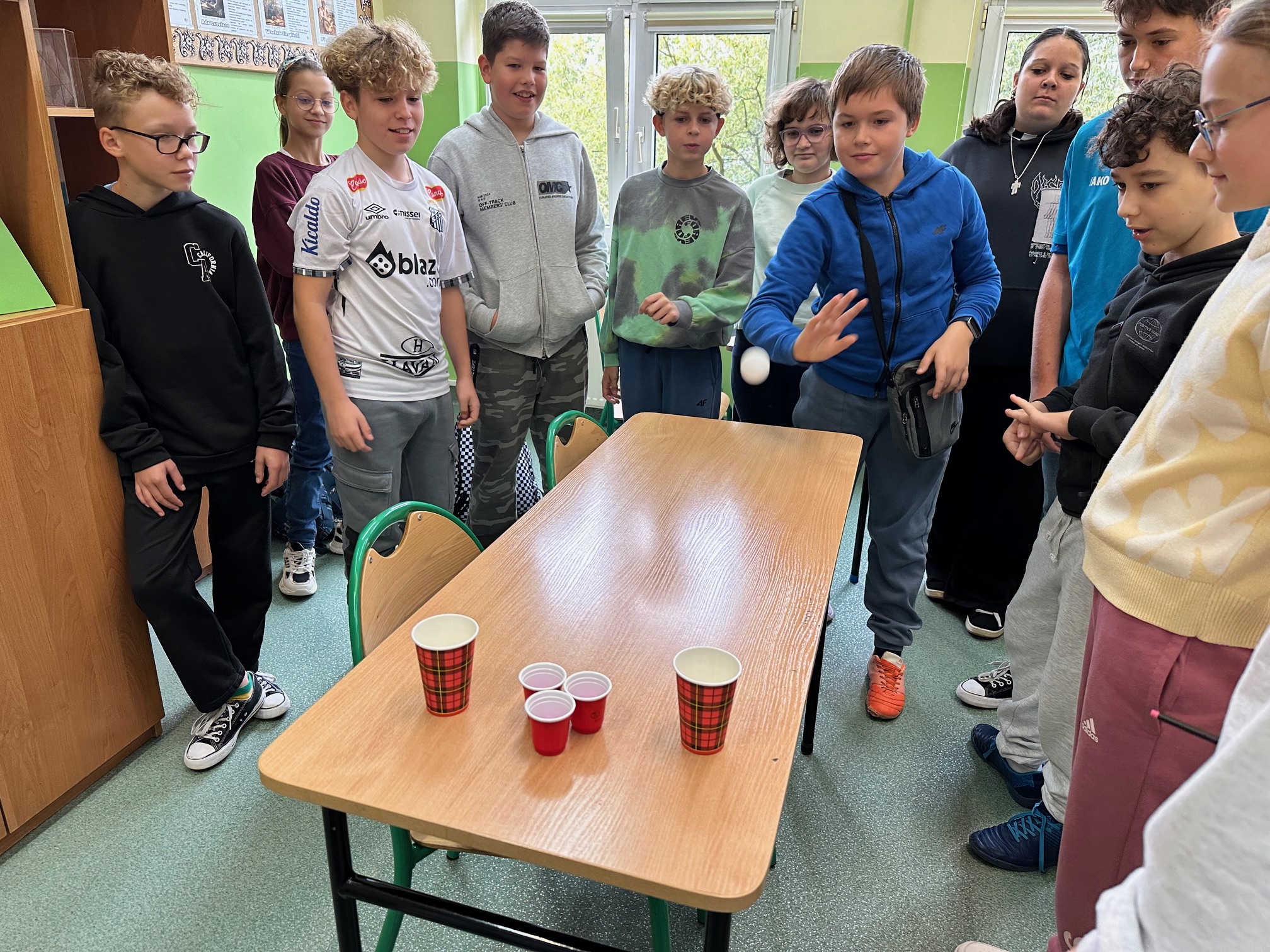 Podczas wspólnej zabawy chłopcy mogli sprawdzić się w różnorodnych konkurencjach. Niektóre z nich wymagały spostrzegawczości i szybkiego działania, jak chociażby układanie puzzli na czas. Inne były prawdziwym testem wiedzy i znajomości świata dziewcząt – szczególnie dużo emocji wywołała konkurencja polegająca na rozpoznawaniu kosmetyków. Nie zabrakło także zabaw sprawnościowych: nawlekanie korali, rzucanie piłeczką do celu czy wykonywanie pompek wzbudziły one wiele śmiechu i zdrowej rywalizacji. Uczniowie mogli również zmierzyć się z quizami, które sprawdzały ich wiedzę, logiczne myślenie i refleks.