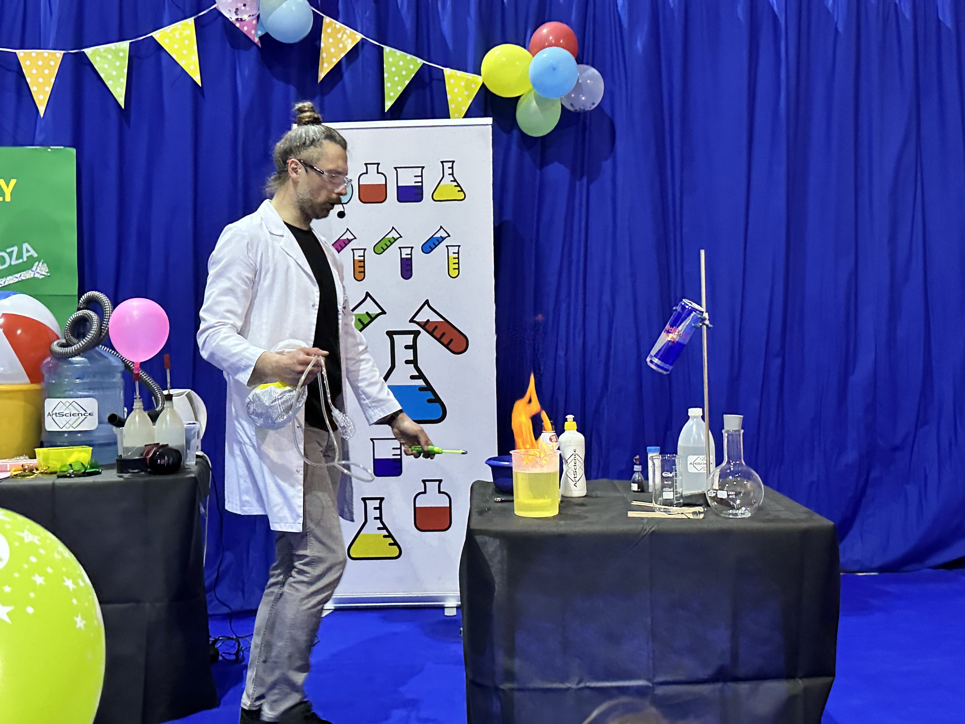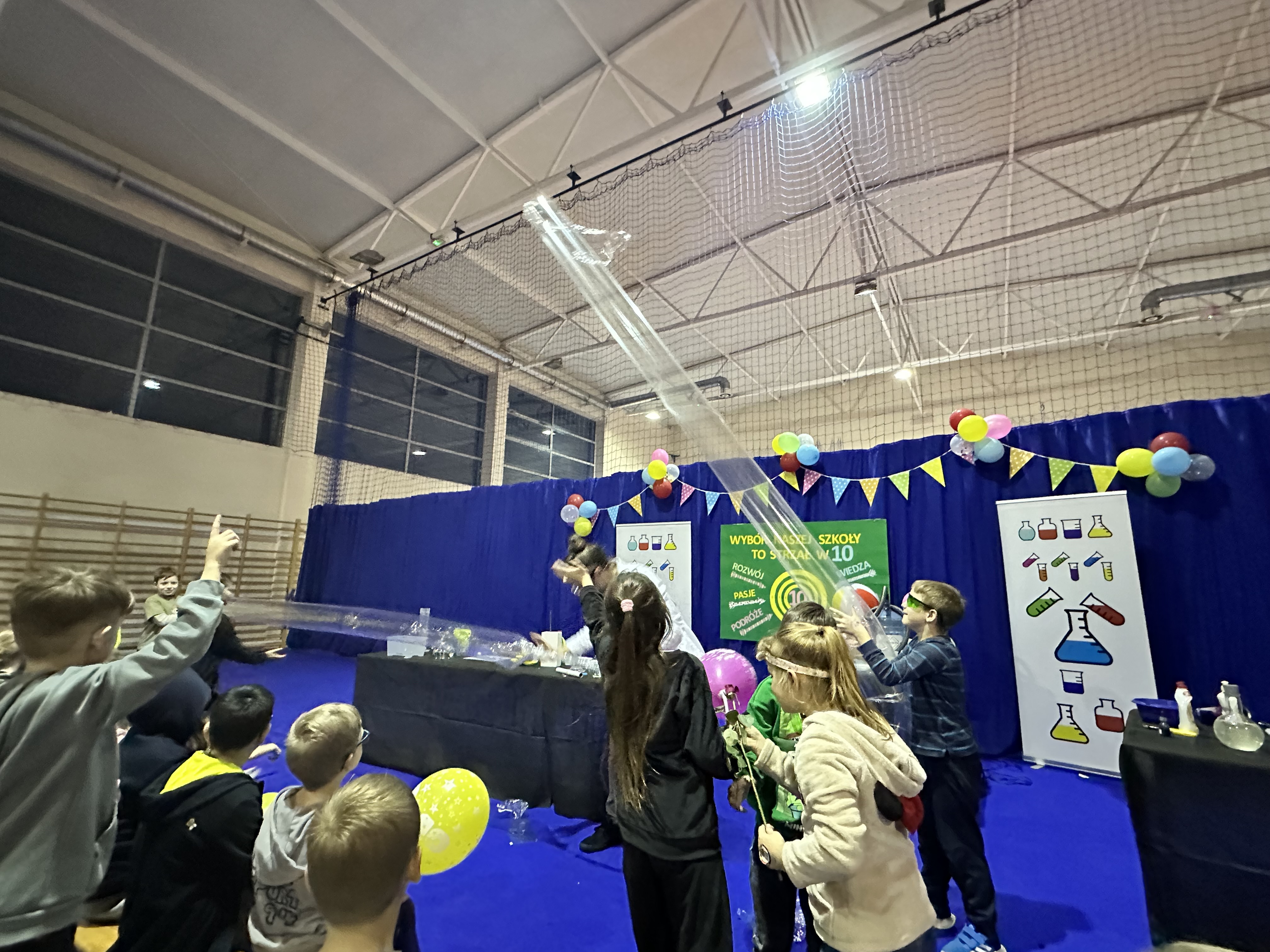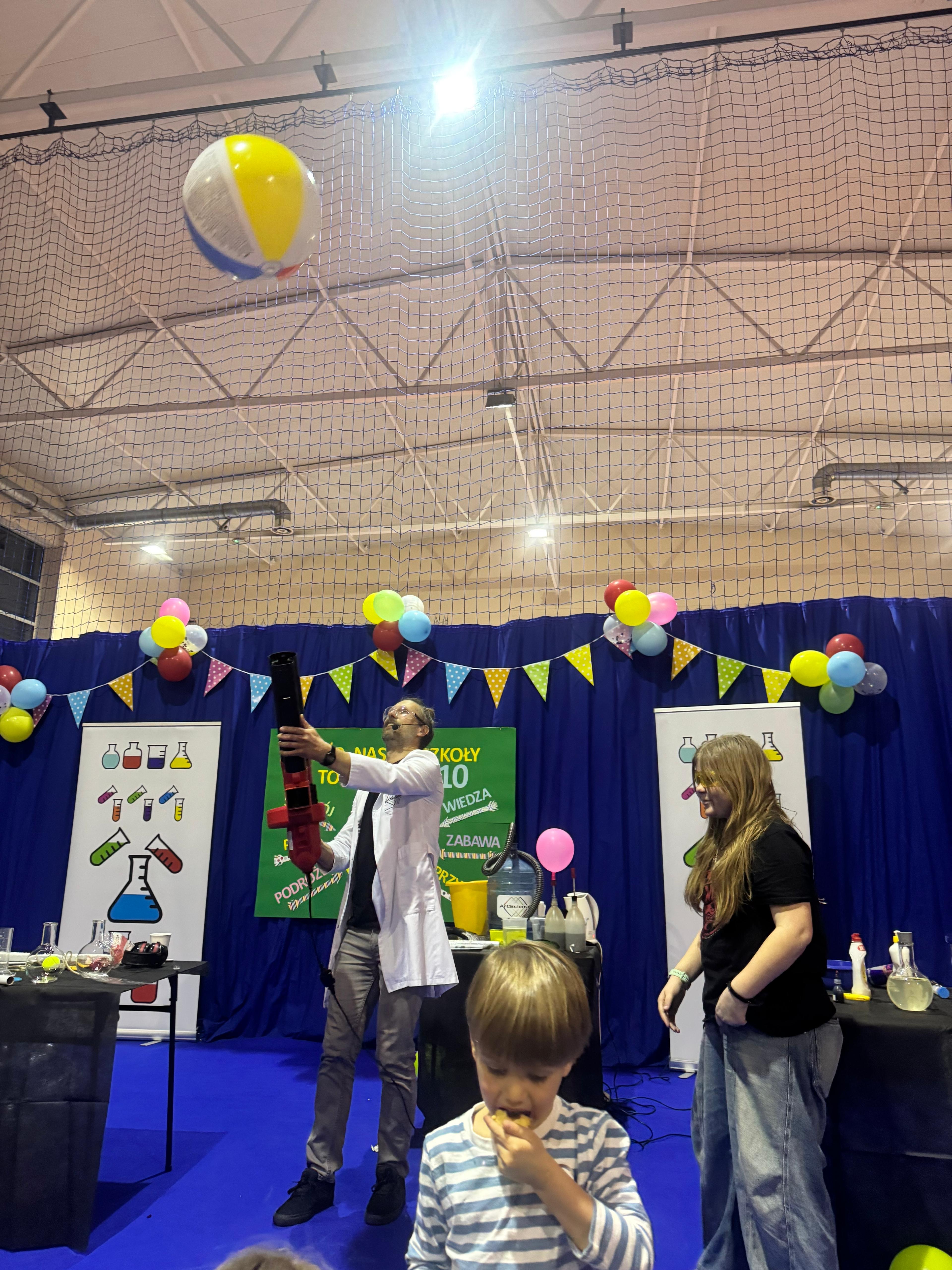 Jednym z najbardziej emocjonujących punktów programu był pokaz „Wściekły Azot”, który wzbudził ogromne zainteresowanie wśród dzieci. Efektowne doświadczenia naukowe dostarczyły wszystkim wielu wrażeń i wywołały sporo radości oraz zdumienia. Pokaz poprowadził popularyzator nauki Mateusz Stocki. Na każdego uczestnika czekał również słodki poczęstunek przygotowany z ogromnym sercem przez naszych nauczycieli.