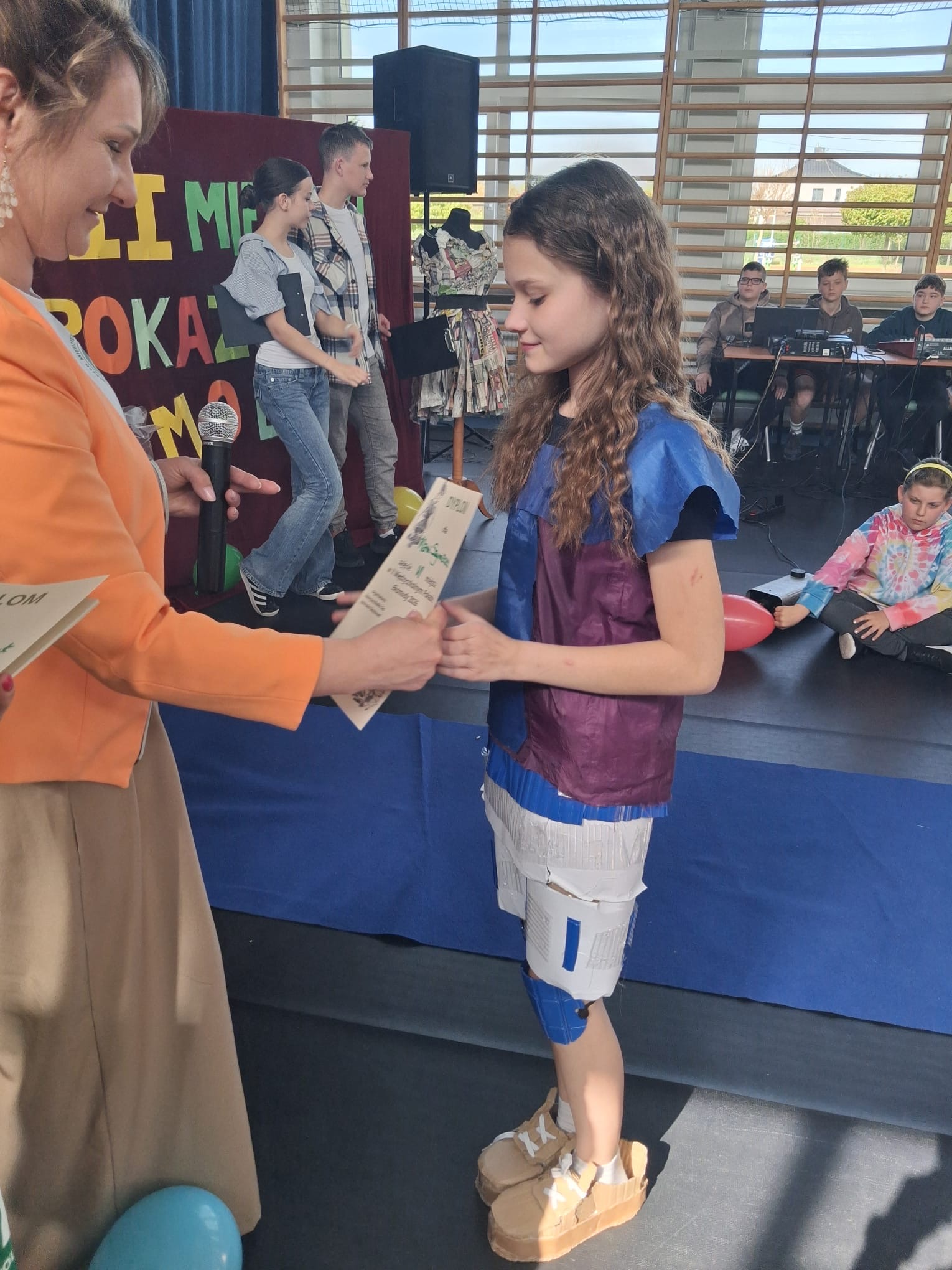 Uczennice naszej szkoły wzięły udział w II Międzyszkolnym Pokazie Eko Mody organizowanym przez Publiczną Szkołę Podstawową nr 15. Pokaz był wyjątkowym wydarzeniem promującym kreatywność oraz troskę o środowisko naturalne. Zadaniem uczestników było przygotowanie strojów wykonanych z surowców wtórnych lub materiałów naturalnych – i trzeba przyznać, że pomysłowość młodych projektantów nie miała granic.