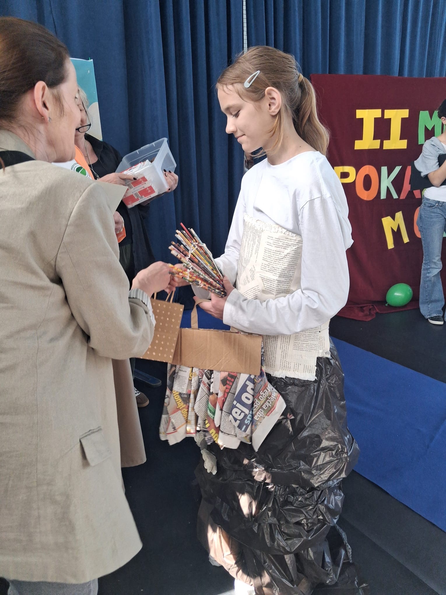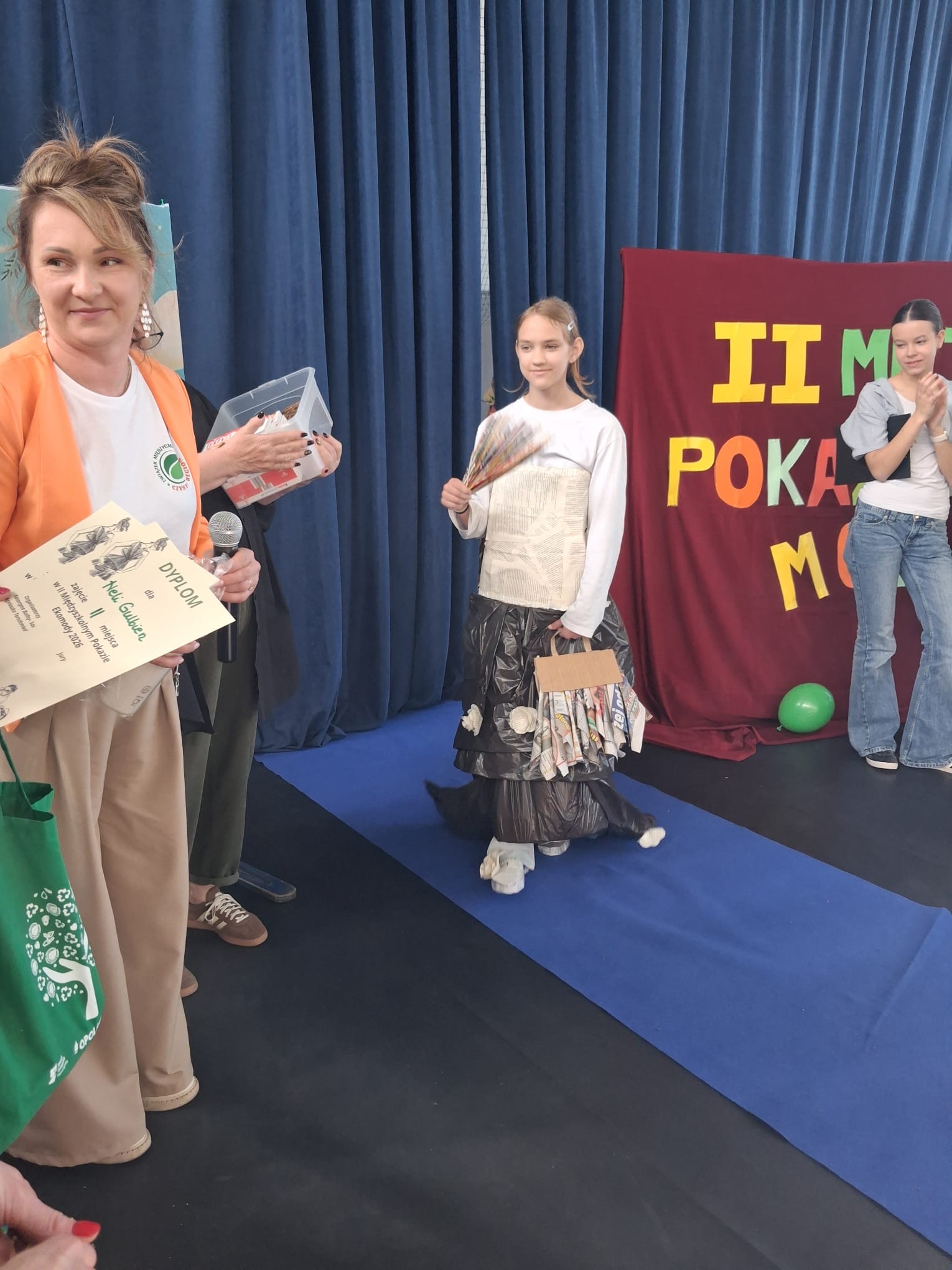 Na wybiegu zaprezentowało się łącznie 16 modeli, którzy zachwycili publiczność oryginalnymi kreacjami powstałymi m.in. z folii, plastikowych butelek czy papieru. Każdy strój był nie tylko unikatowy, ale także niósł ważne przesłanie dotyczące ekologii i ponownego wykorzystania materiałów. Pokaz odbył się na specjalnie przygotowanym wybiegu, udekorowanym balonami, co dodatkowo podkreśliło wyjątkowy charakter wydarzenia. Całości towarzyszyła wspaniała atmosfera, pełna radości, wsparcia i pozytywnej energii.