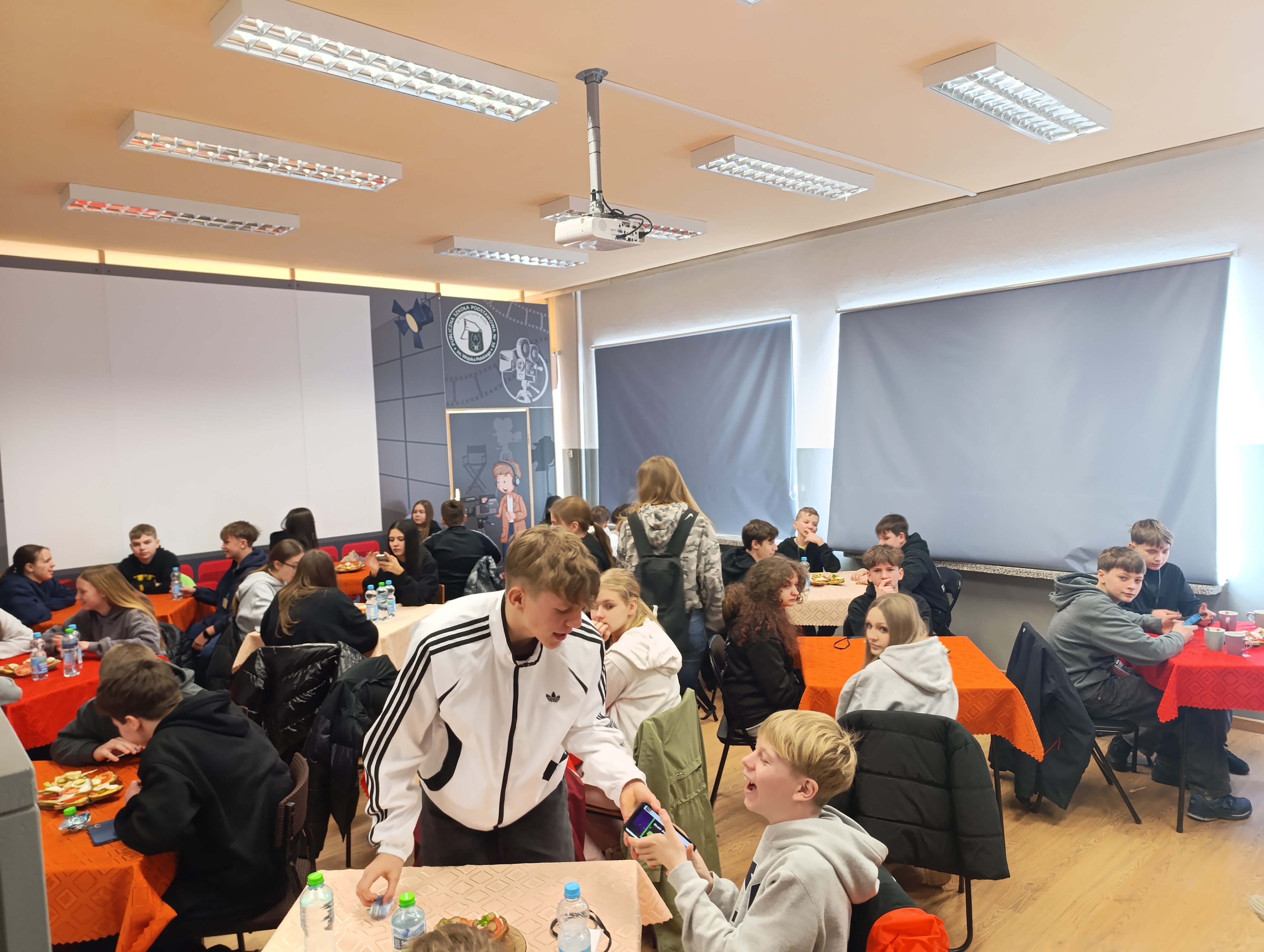 Na koniec serdeczne podziękowania kierujemy do pań pomocy nauczyciela, które przed rozpoczęciem konkursu przygotowały dla uczestników pyszne i pożywne kanapki, dostarczające mocy i energii na czas wymagających zmagań. Po intensywnej, pełnej emocji rywalizacji nasze wspaniałe panie kucharki zadbały natomiast o ciepły posiłek – pyszne pierogi. Dzięki ich zaangażowaniu uczestnicy mogli zarówno dobrze rozpocząć konkurs, jak i zakończyć go w miłej, serdecznej atmosferze.