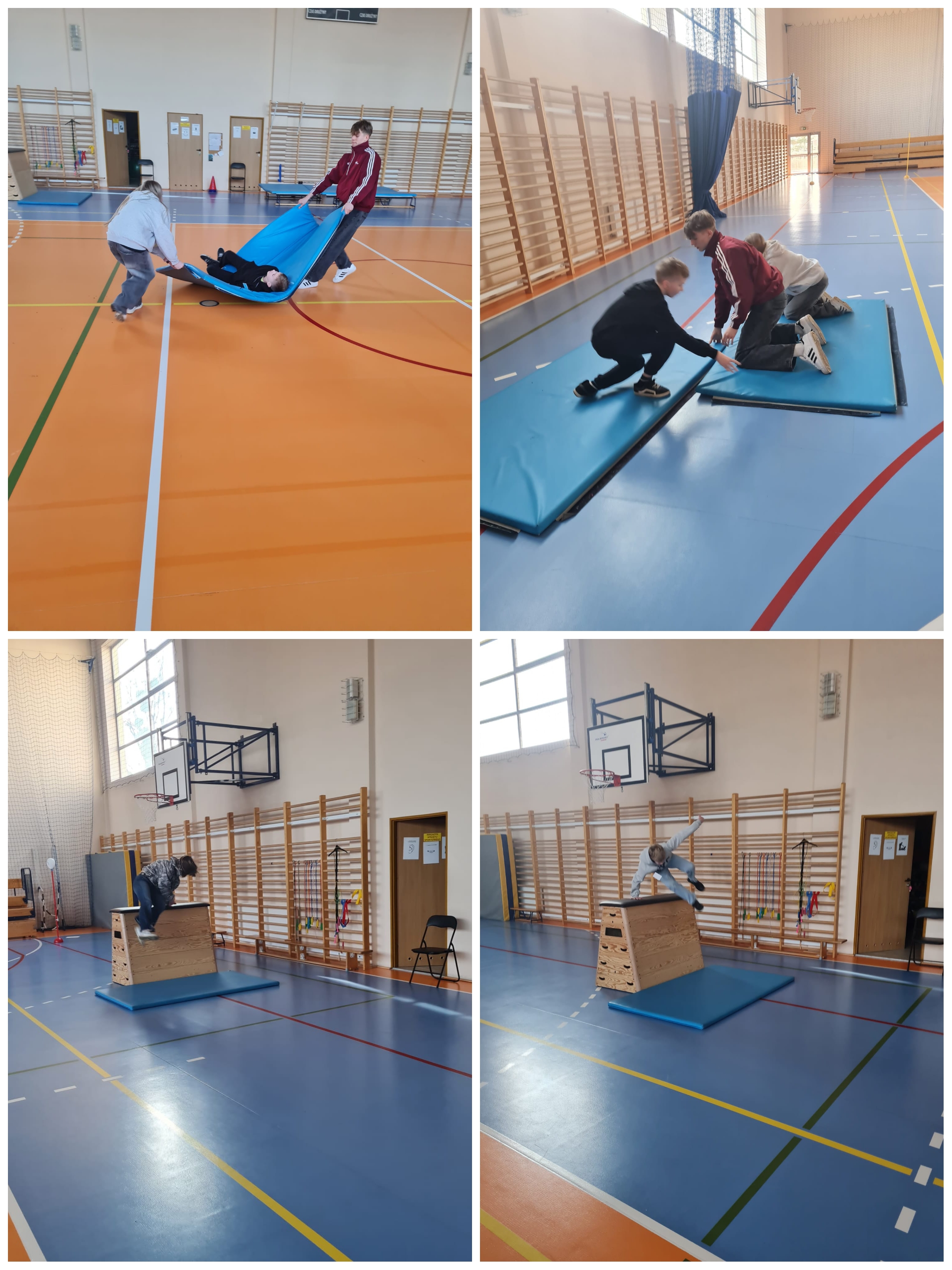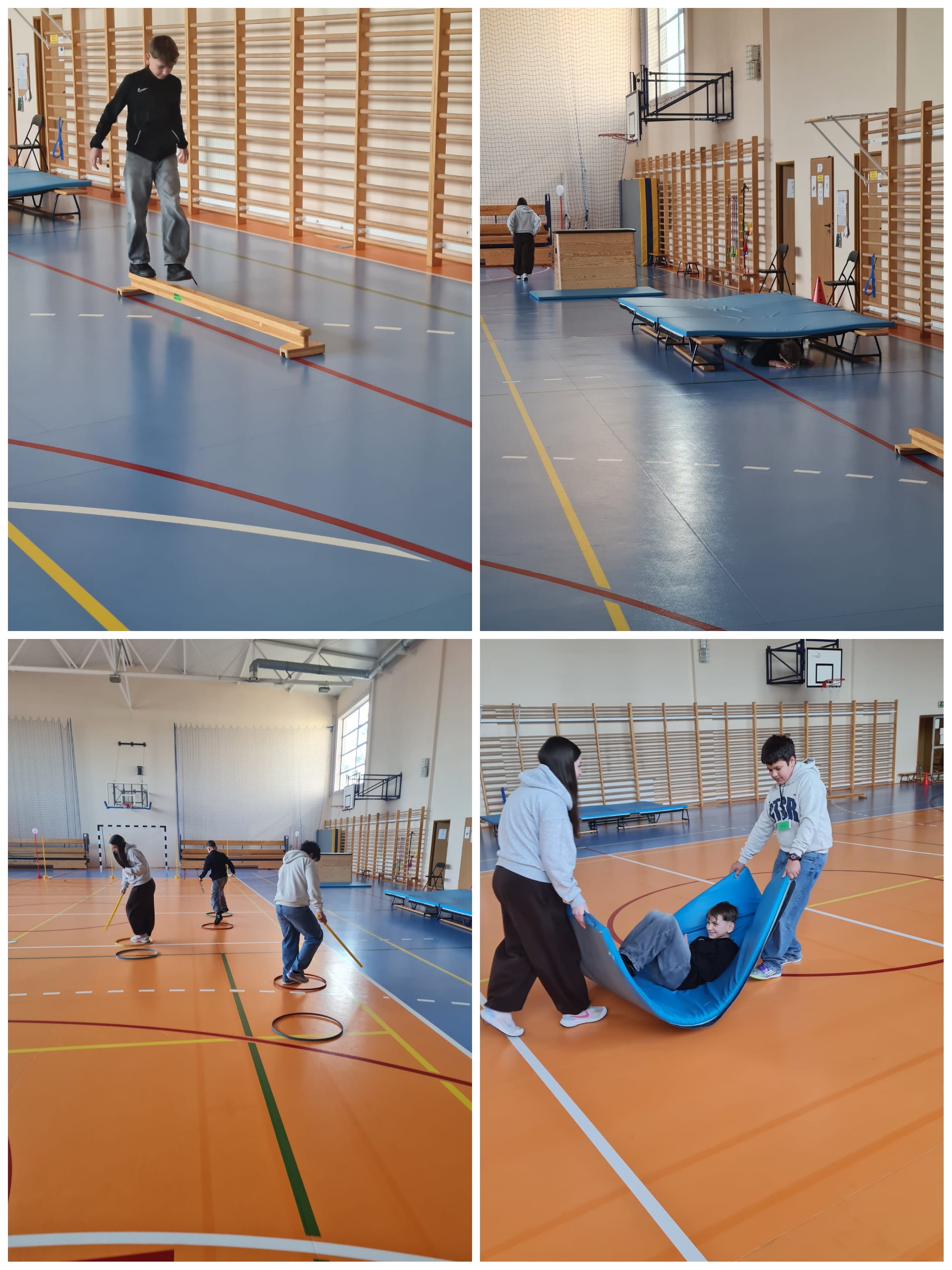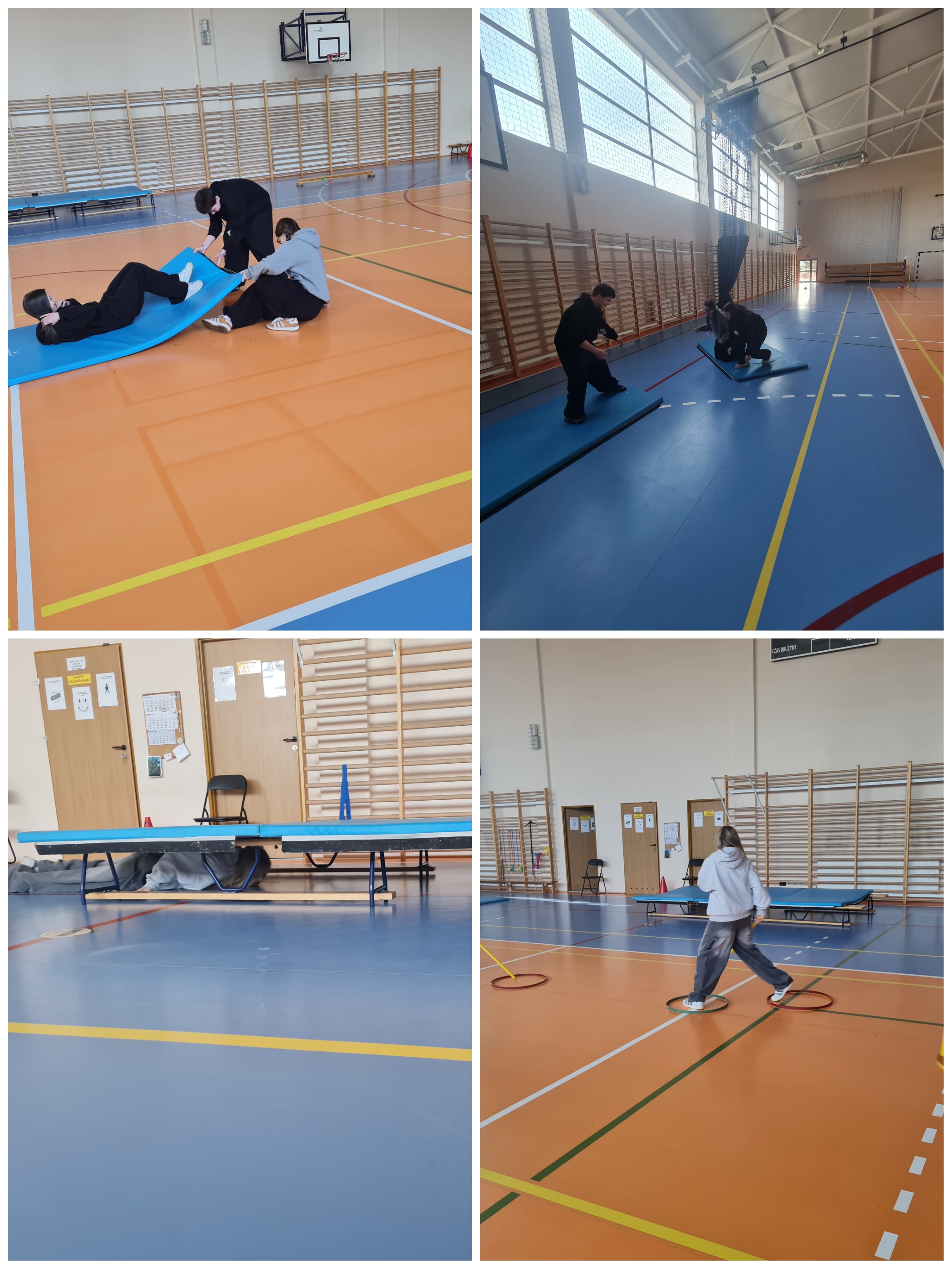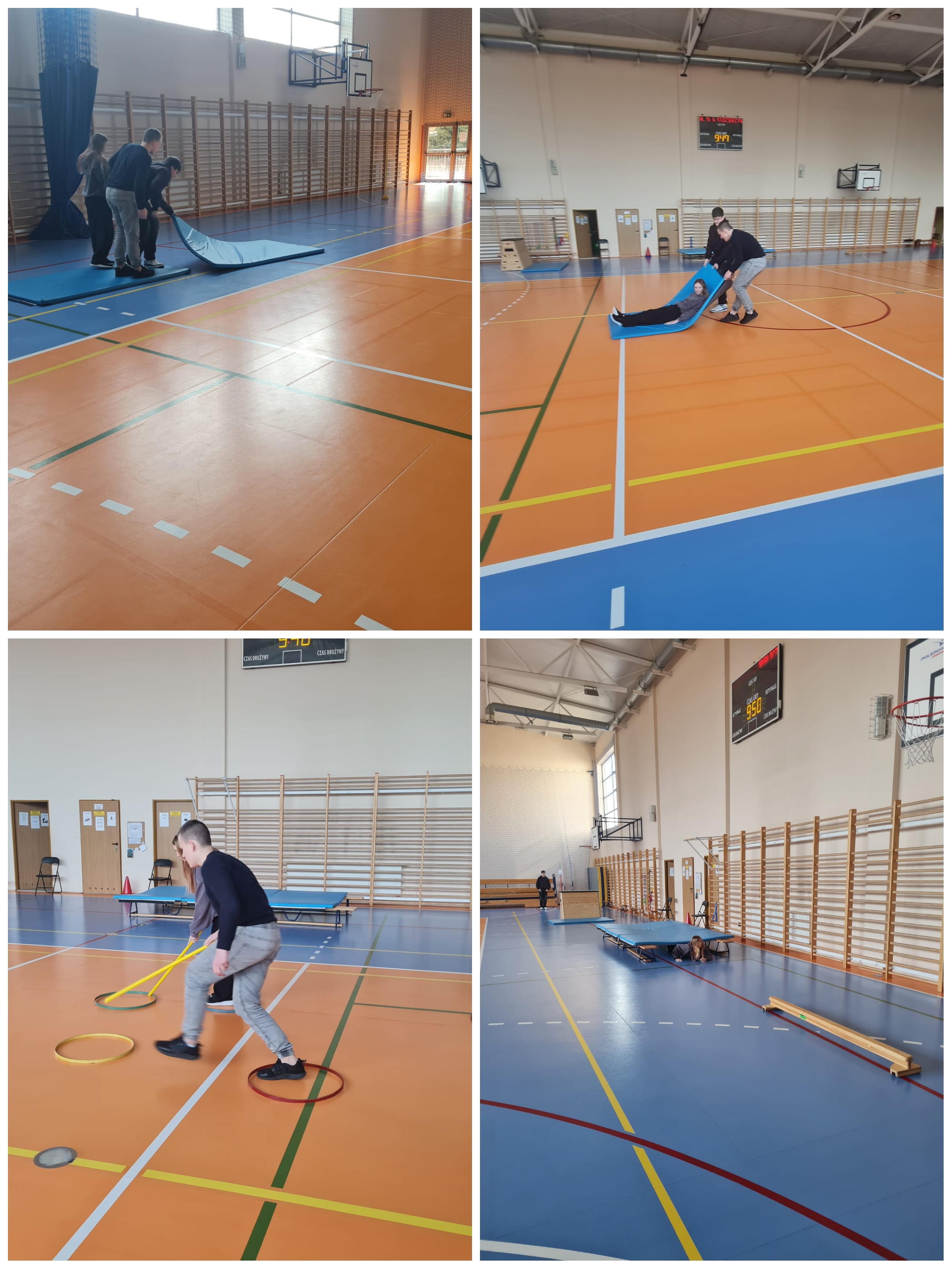 Kolejnym punktem zmagań była szkoła, gdzie na sali gimnastycznej drużyny realizowały zadania o charakterze sprawnościowym w ramach „Misji ratunkowej”. Konkurencje te wymagały od uczestników dobrej współpracy, zaangażowania, sprytu oraz umiejętności sprawnej organizacji działań w zespole.