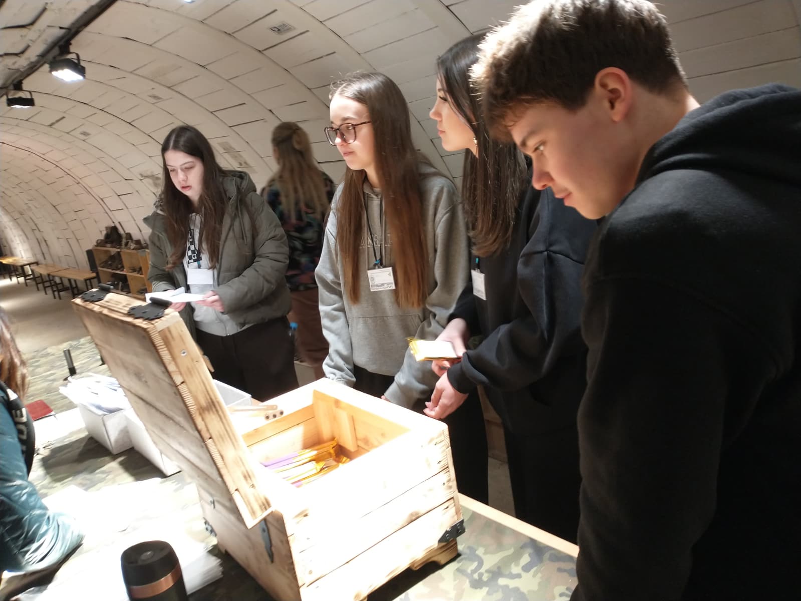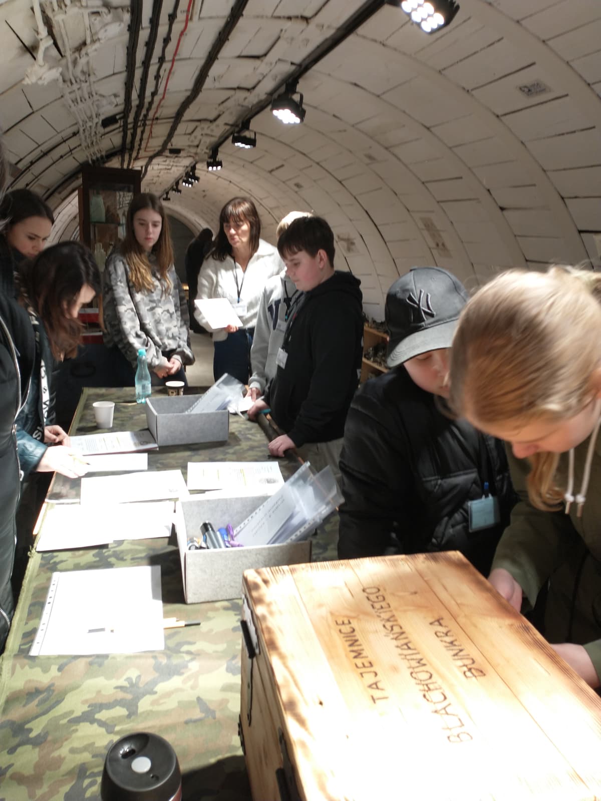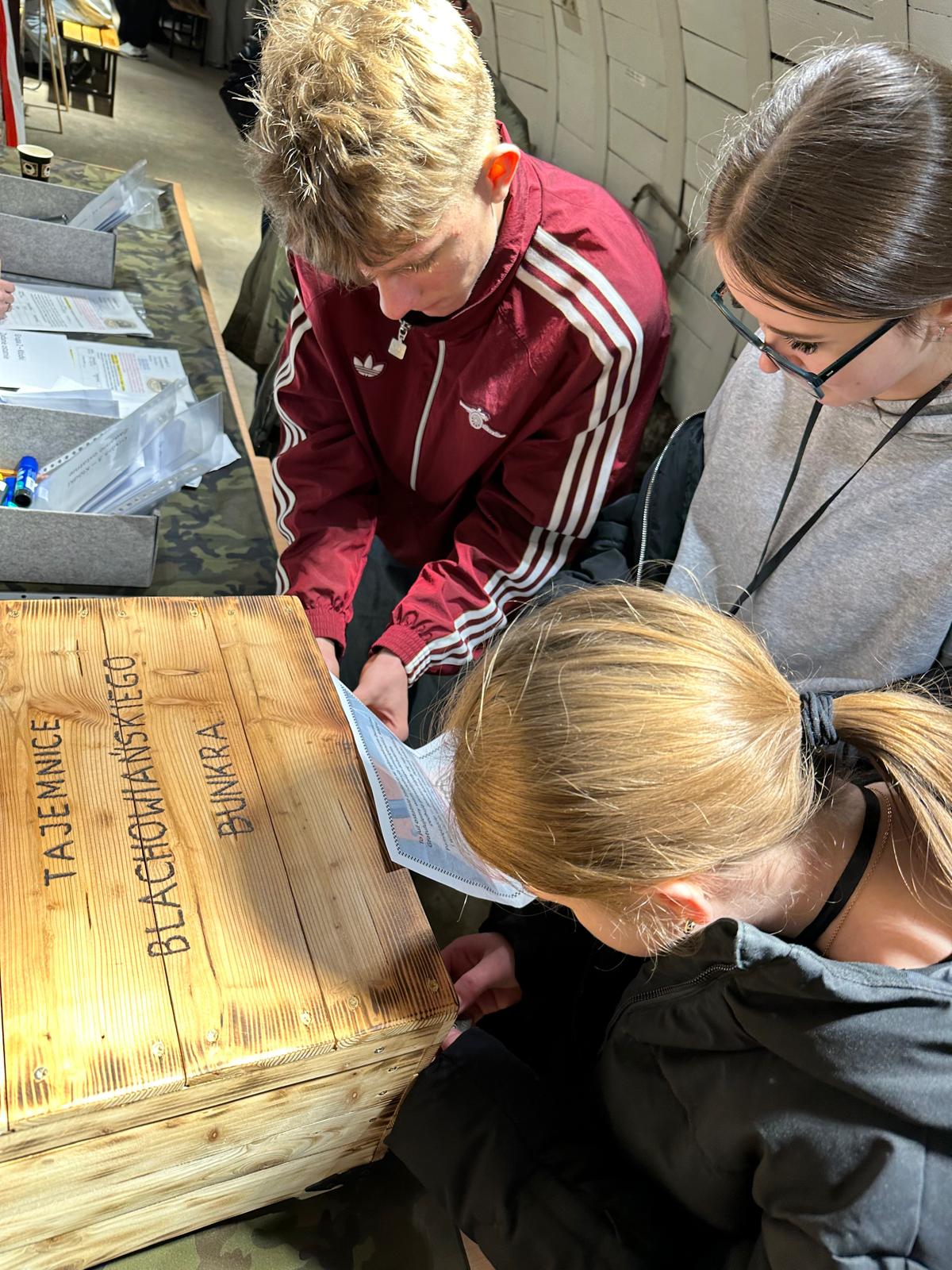 W Muzeum Śląskiej Bitwy o Paliwo „BLECHHAMMER 1944” na uczestników czekało zadanie w formie emocjonującego Escape Roomu. Uczniowie musieli rozwiązać logiczne zagadki oraz wykazać się spostrzegawczością, aby otworzyć tajemniczą drewnianą skrzynię ze słodkościami.