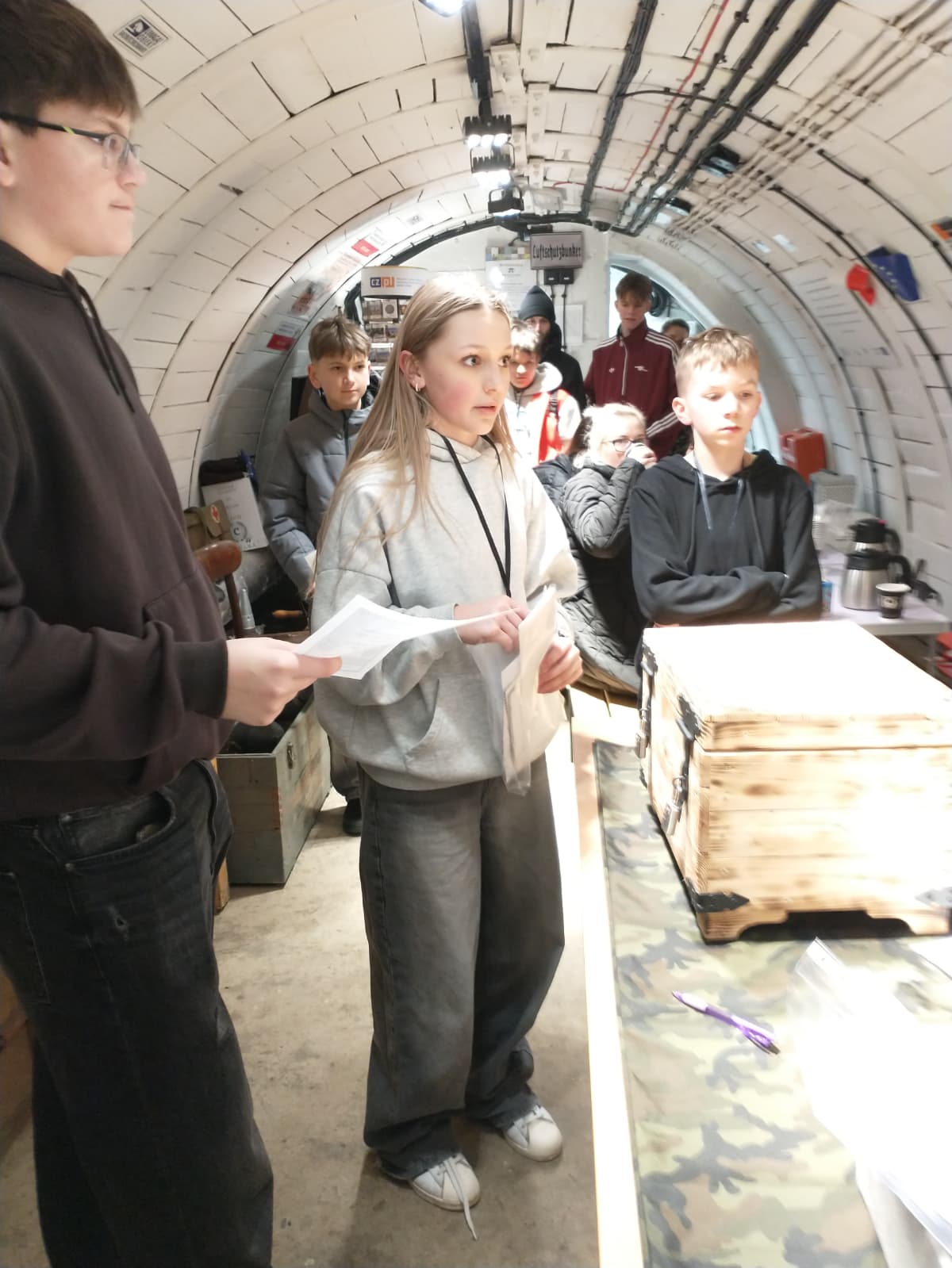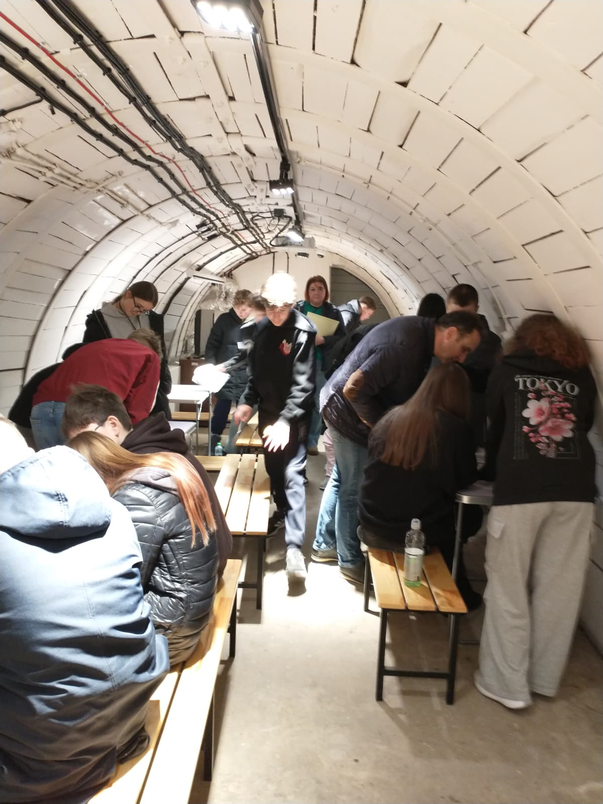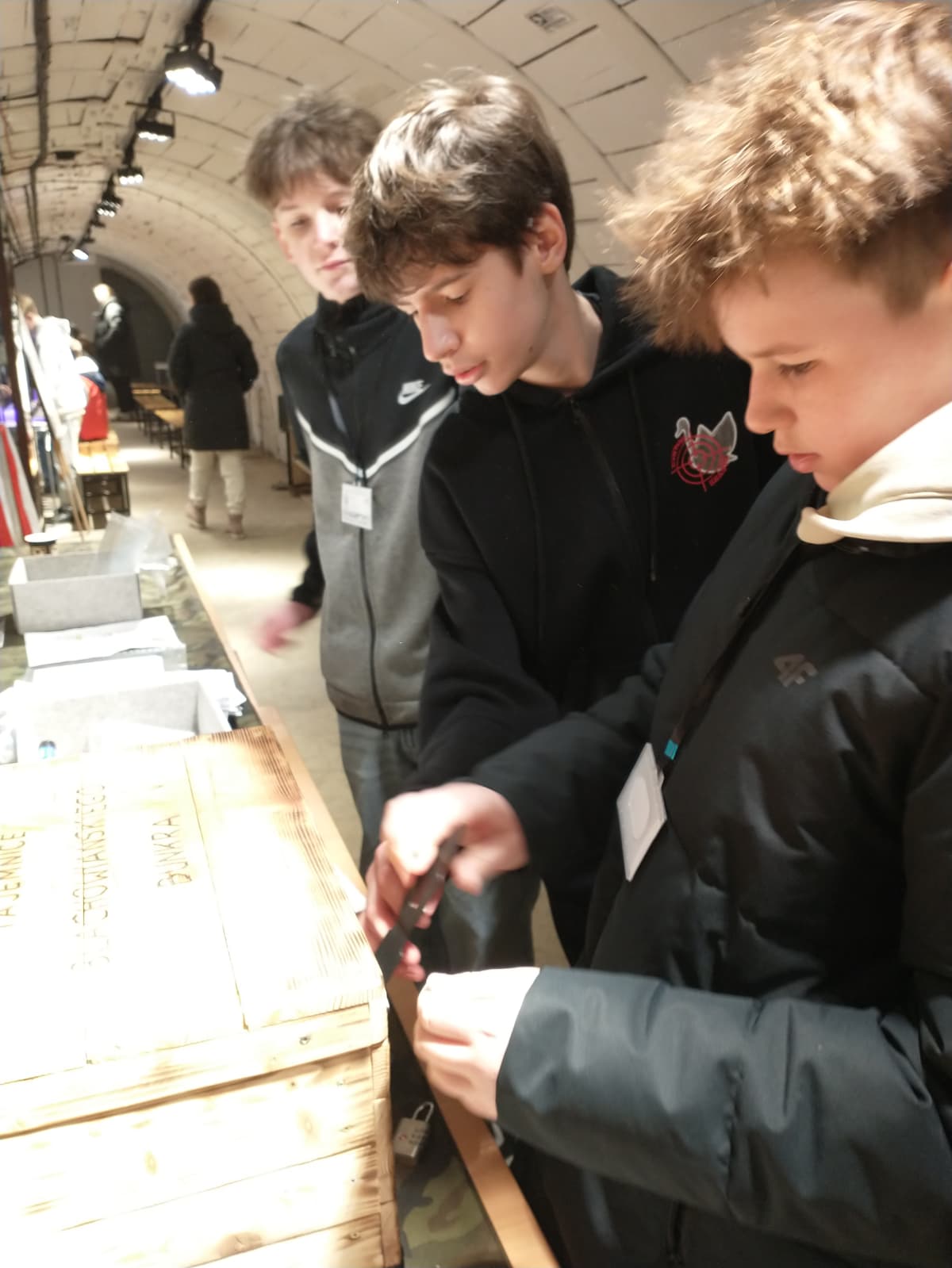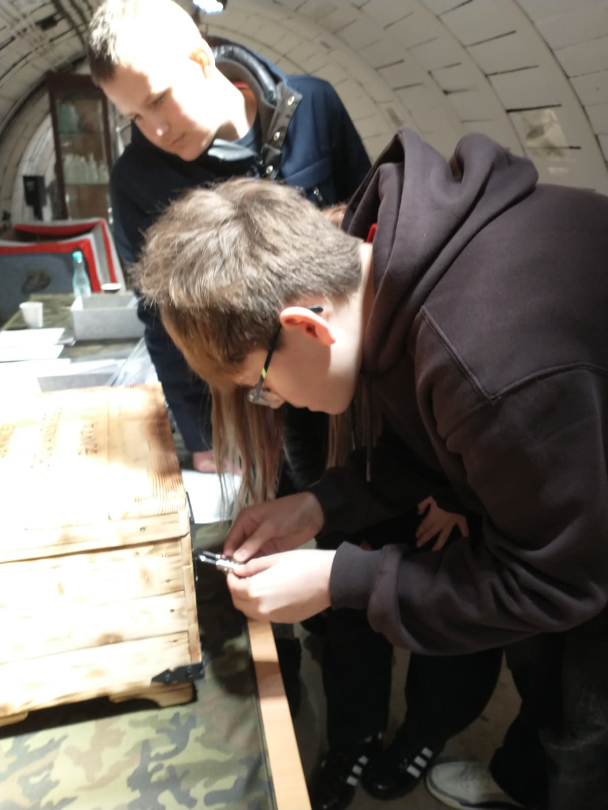 W Muzeum Śląskiej Bitwy o Paliwo „BLECHHAMMER 1944” na uczestników czekało zadanie w formie emocjonującego Escape Roomu. Uczniowie musieli rozwiązać logiczne zagadki oraz wykazać się spostrzegawczością, aby otworzyć tajemniczą drewnianą skrzynię ze słodkościami.