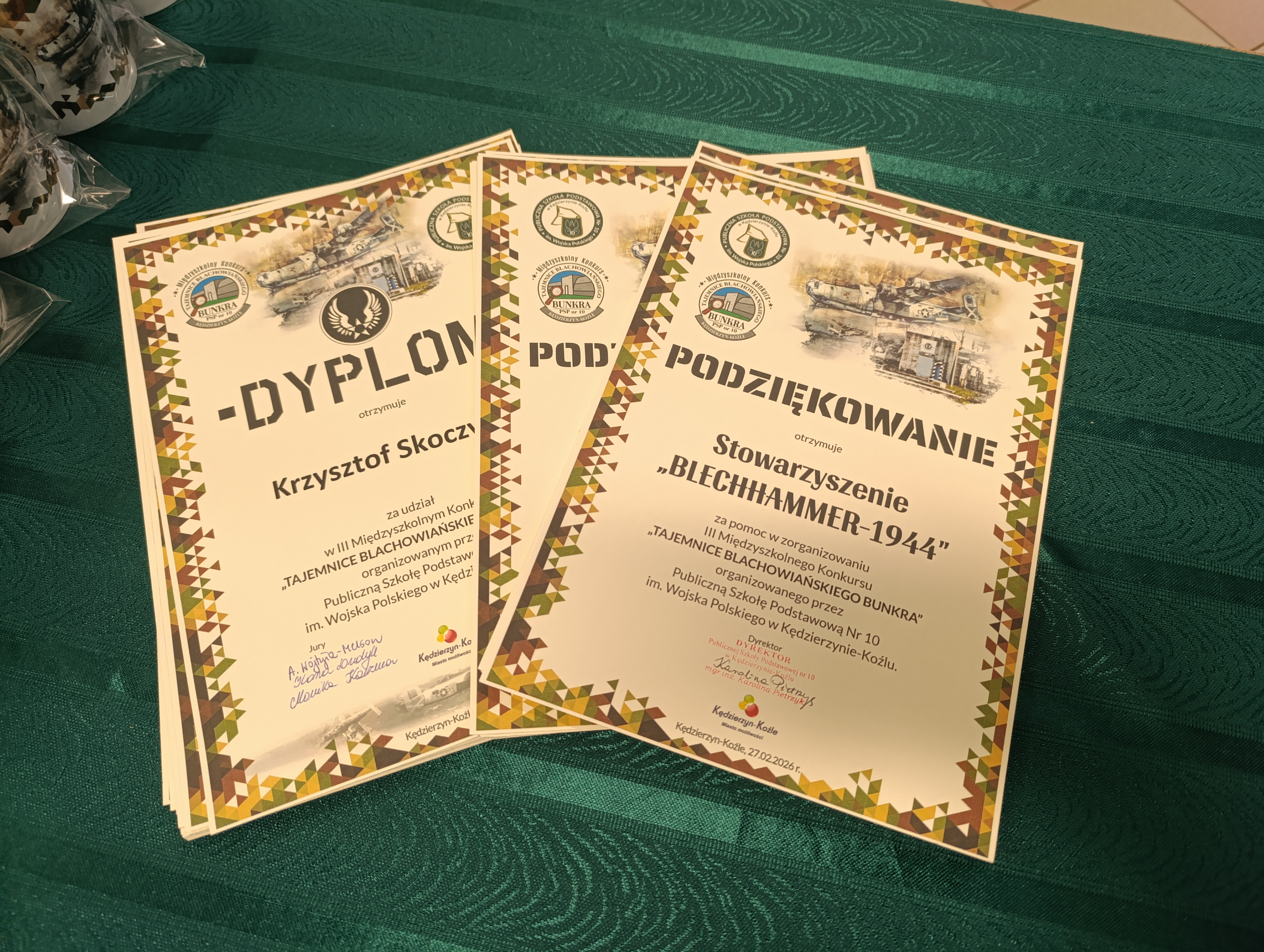 Wyrazy wdzięczności kierujemy także do pana Waldemara Ociepskiego oraz Stowarzyszenia "Blechhammer - 1944" za udostępnienie przestrzeni oraz nieocenioną pomoc w organizacji konkursu – to dzięki ich wsparciu mogliśmy zrealizować tak bogaty i ciekawy program.