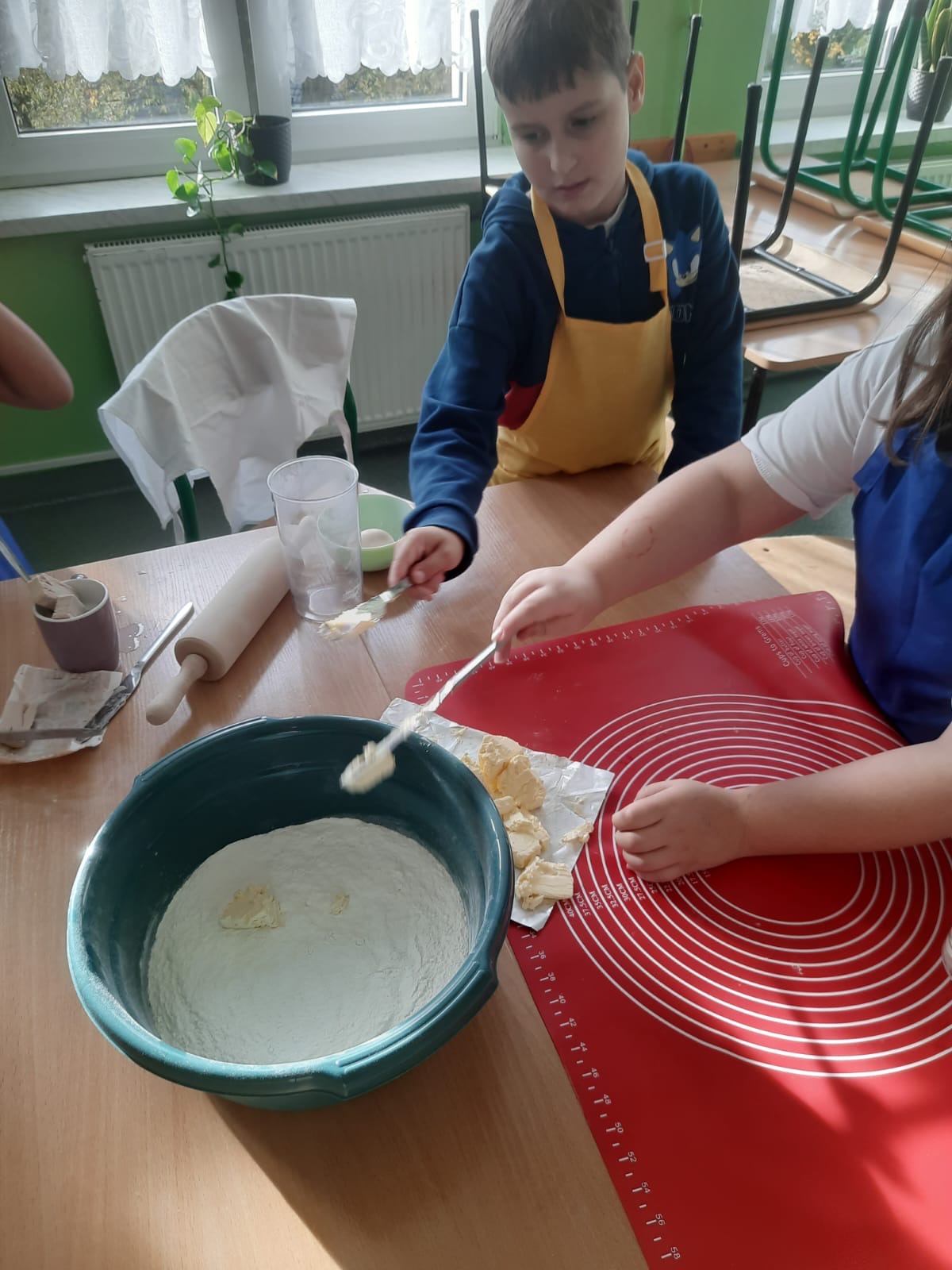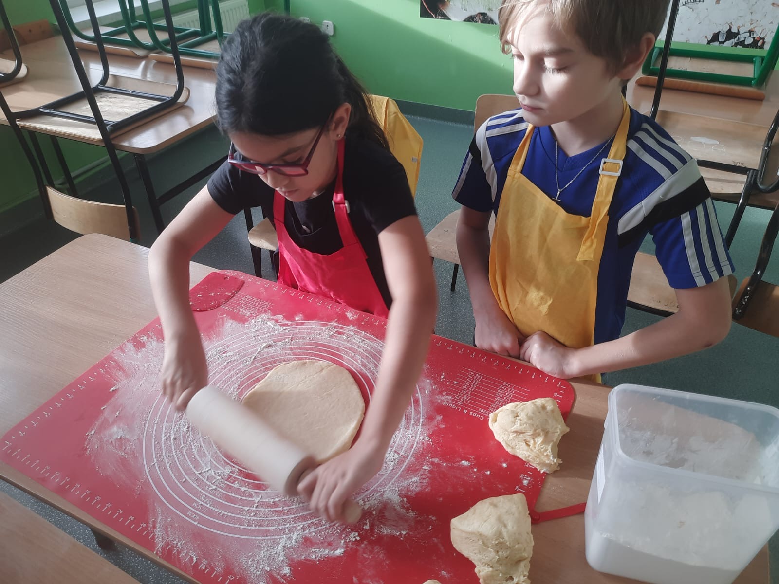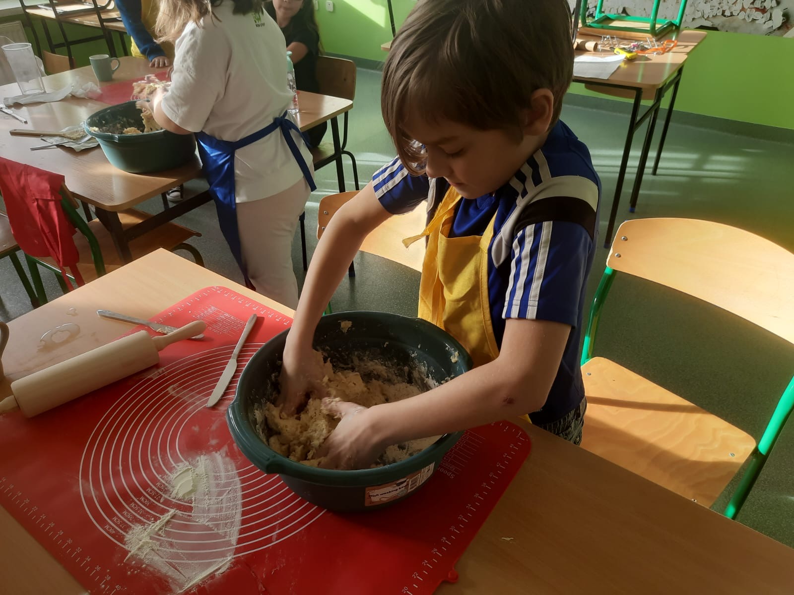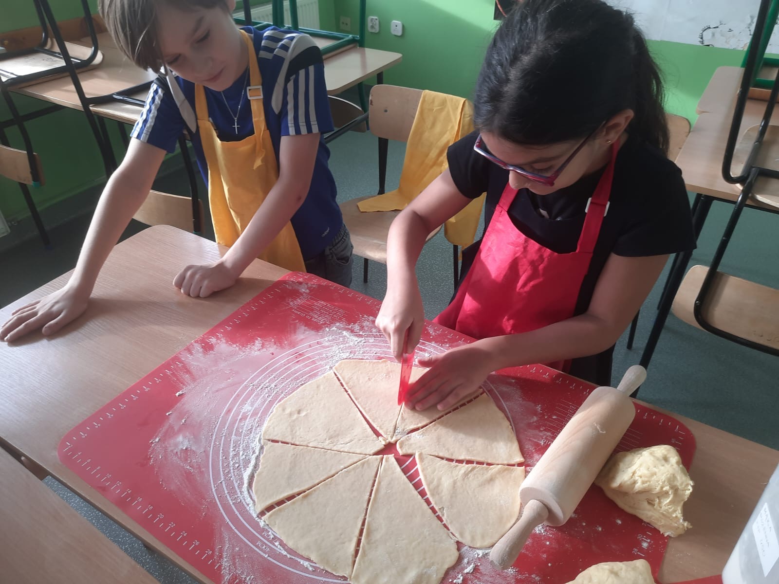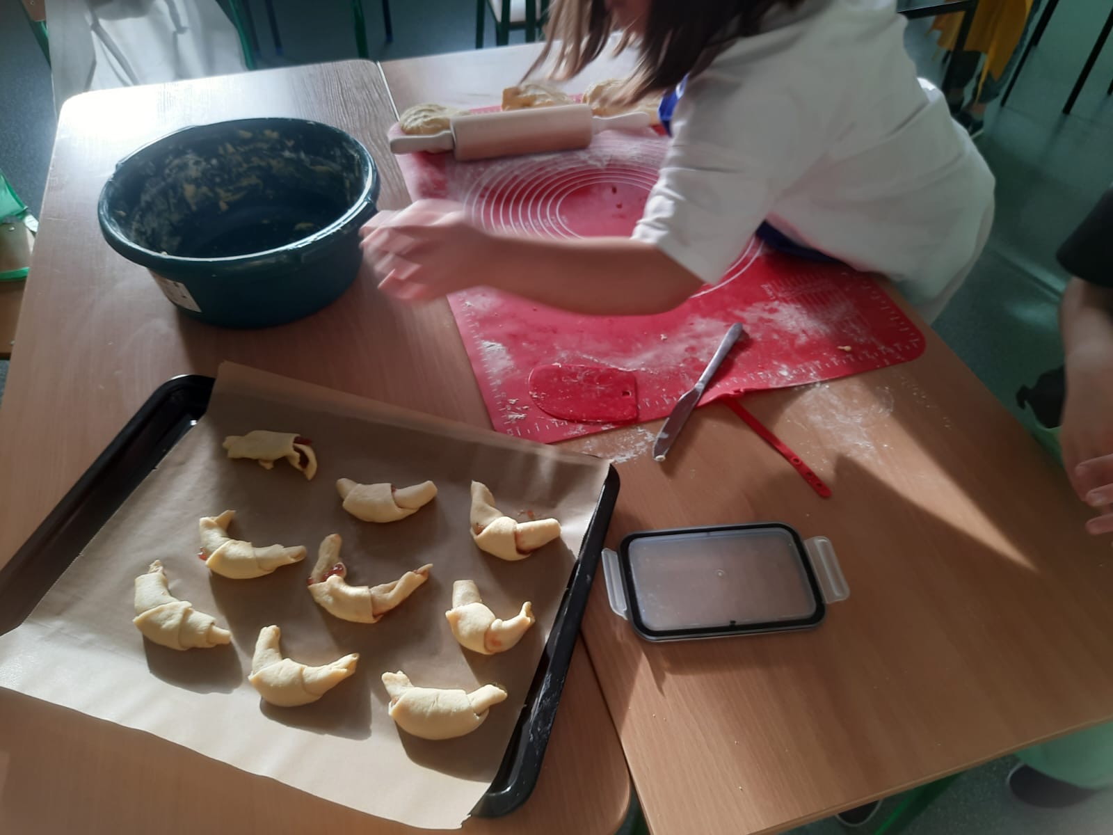 W piątek odbyły się już trzecie zajęcia kulinarne w świetlicy szkolnej, prowadzone przez panią Dobrosławę Tokarską. Tym razem dzieci z klasy 2 miały okazję spróbować swoich sił w przygotowywaniu rogalików drożdżowych z marmoladą.
