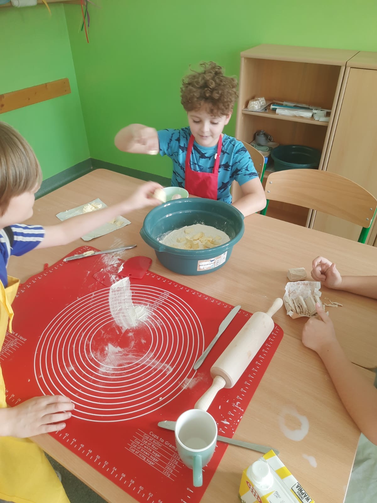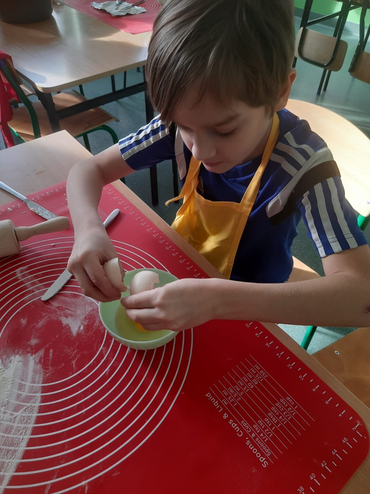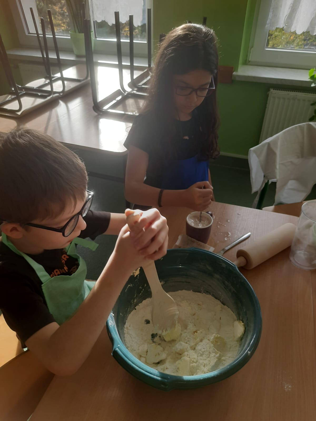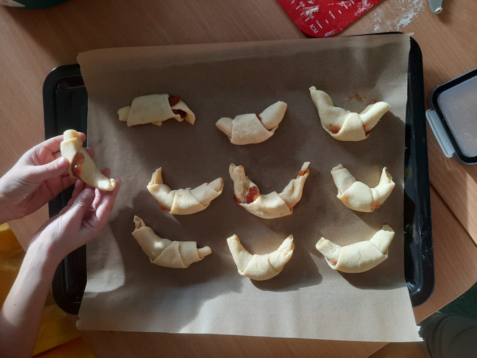 W piątek odbyły się już trzecie zajęcia kulinarne w świetlicy szkolnej, prowadzone przez panią Dobrosławę Tokarską. Tym razem dzieci z klasy 2 miały okazję spróbować swoich sił w przygotowywaniu rogalików drożdżowych z marmoladą.