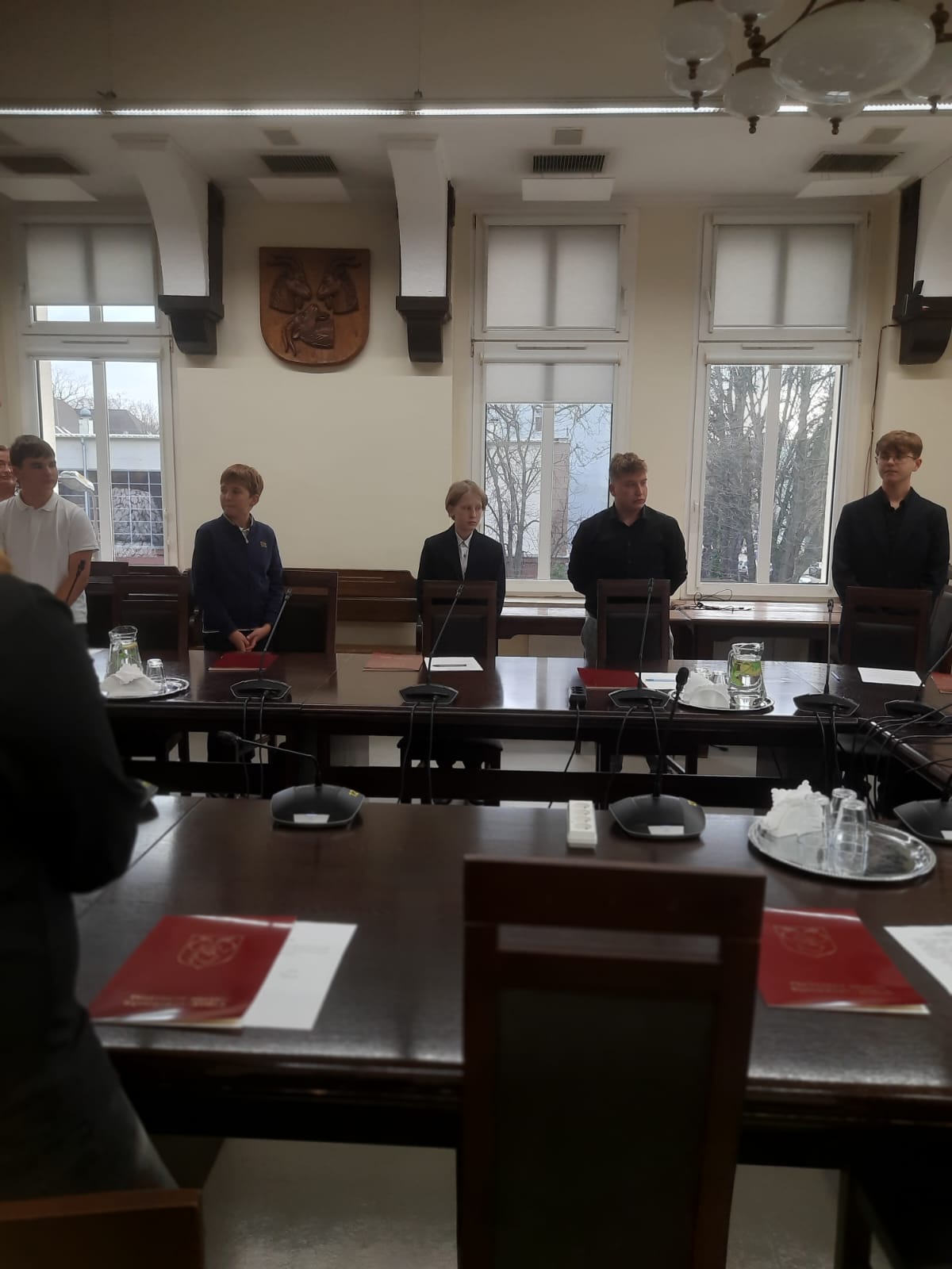 Dziś Szymon wziął udział w swojej pierwszej sesji Młodzieżowej Rady Miasta, podczas której został oficjalnie zaprzysiężony. Uczestniczył również w pracach komisji skrutacyjnej, pomagając w przeprowadzeniu wyborów przewodniczącego, wiceprzewodniczących oraz sekretarza Młodzieżowej Rady Miasta. To ważne doświadczenie, które otwiera przed nim drzwi do aktywnej działalności na rzecz młodych mieszkańców naszego miasta.