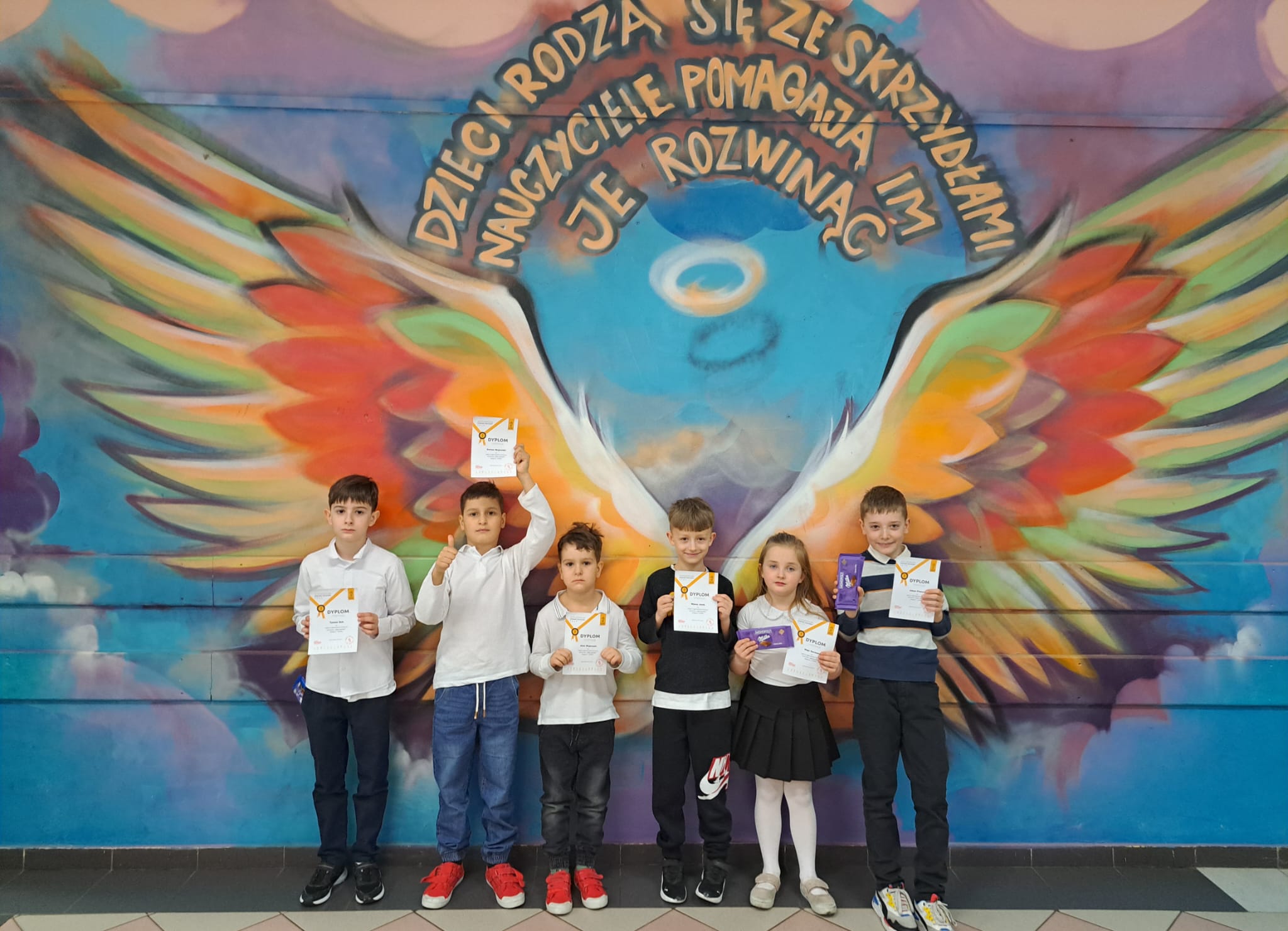 Klasa 3: Franciszek Czepul, Adam Piekarz, Szymon Popanda, Natan Wosczyna, Julia Zając, Hanna Zasada, Tomasz Zembski