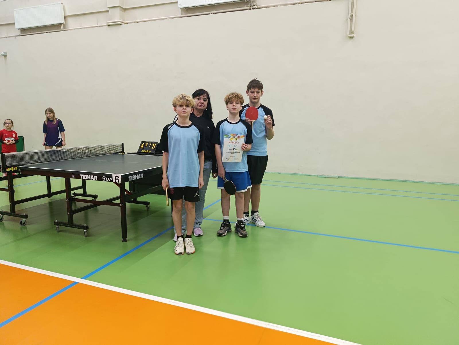 Dnia 9 stycznia 2026 r. uczniowie naszej szkoły wzięli udział w Mistrzostwach Powiatu w tenisie stołowym chłopców drużynowo, rozgrywanych w ramach Igrzysk Dzieci. Zawody przebiegały w silnie obsadzonej grupie. Reprezentanci szkoły rozegrali bardzo dobre mecze singlowe oraz deblowe. Ostatecznie drużyna zajęła 5 miejsce w klasyfikacji końcowej.