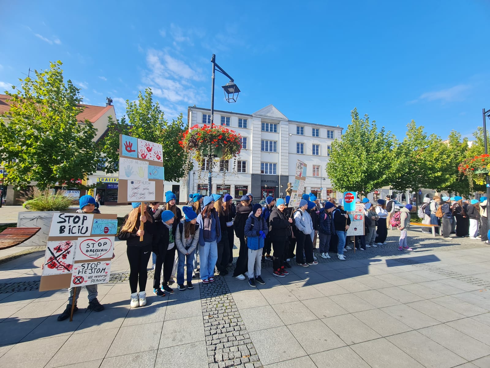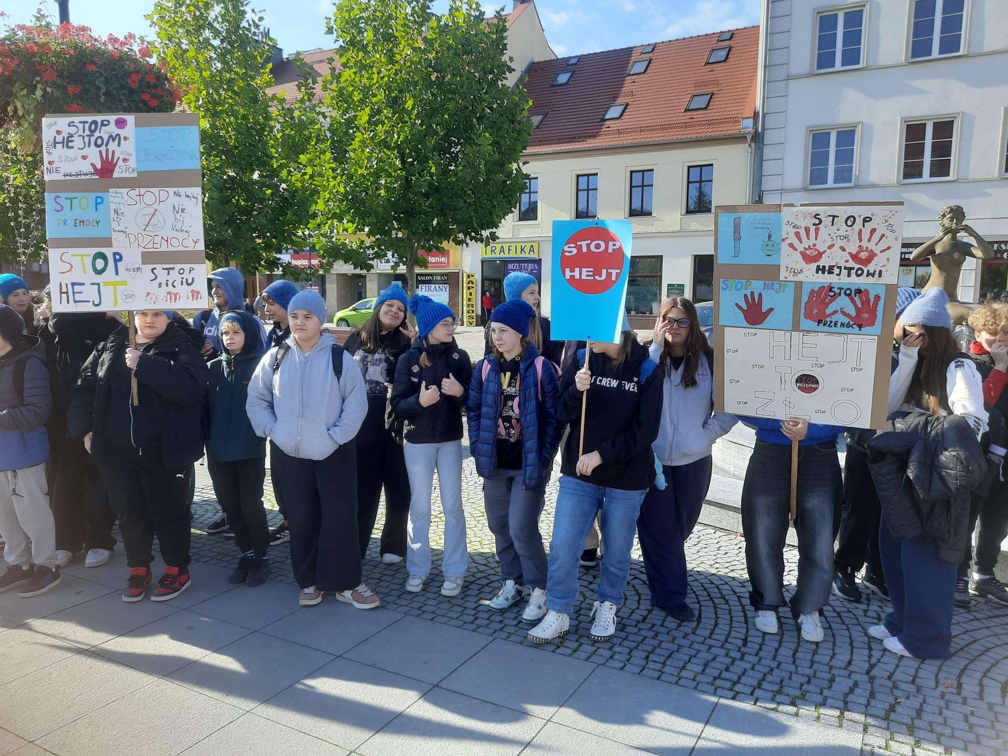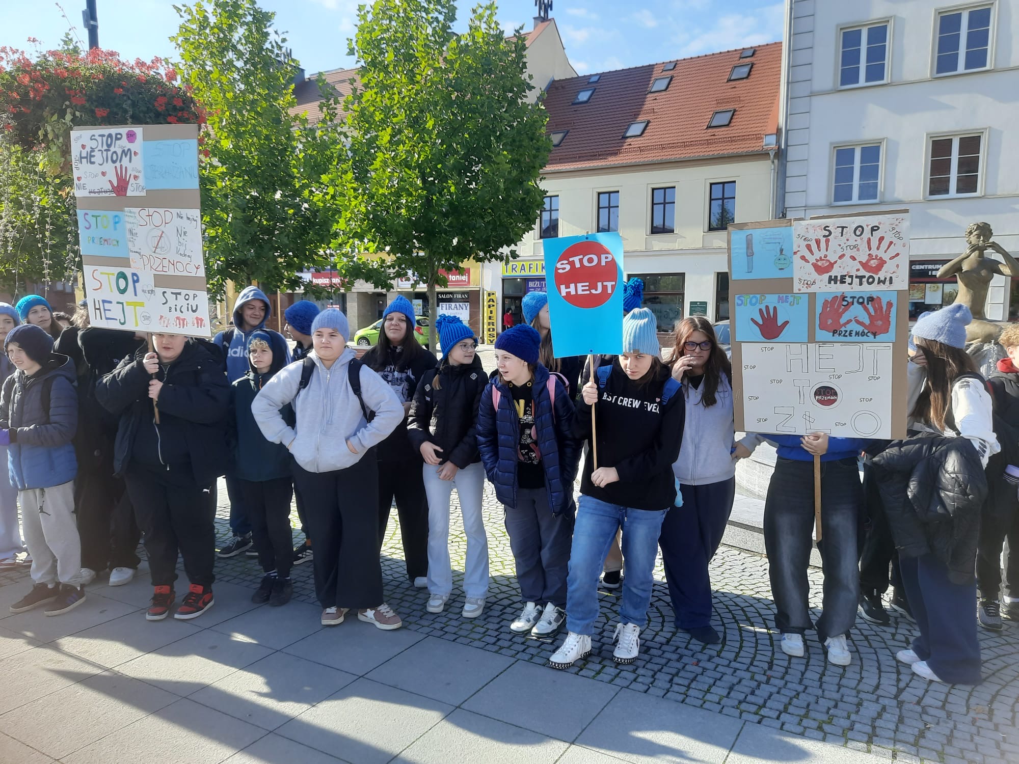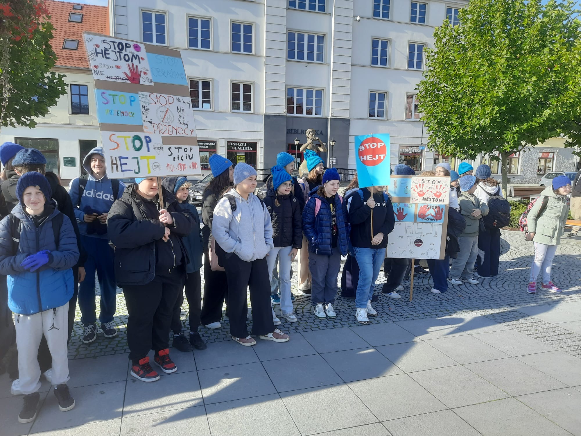 2 października uczniowie klas VI–VIII wzięli udział w przemarszu przeciwko agresji i przemocy w ramach akcji „Hat not hate”. Nasza szkoła uczestniczy w marszu od samego początku tej inicjatywy. Już podczas pierwszej edycji uczniowie własnoręcznie wykonali niebieskie czapki, które do dziś są znakiem rozpoznawczym akcji i symbolem sprzeciwu wobec przemocy. Marsz był wyrazem sprzeciwu wobec wszelkich przejawów przemocy rówieśniczej oraz apelem o budowanie relacji opartych na szacunku i przyjaźni.