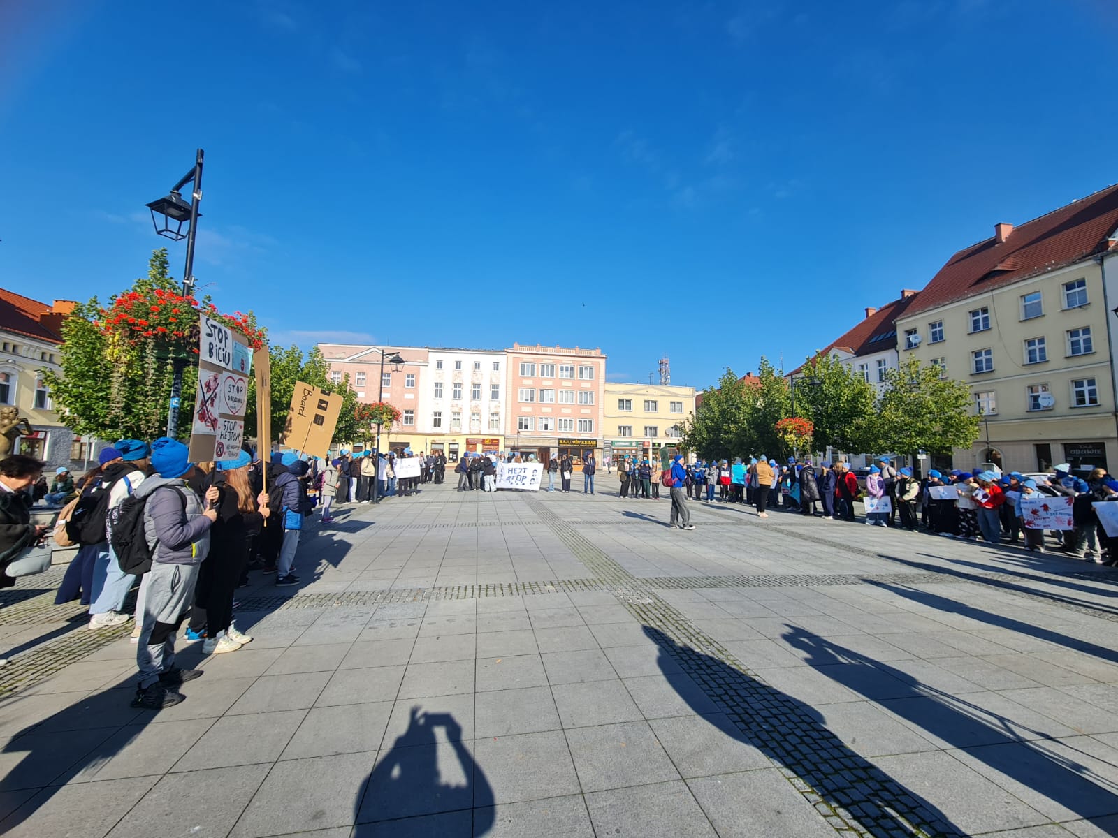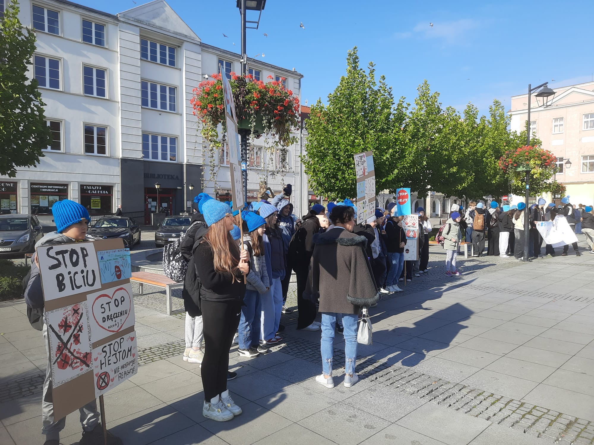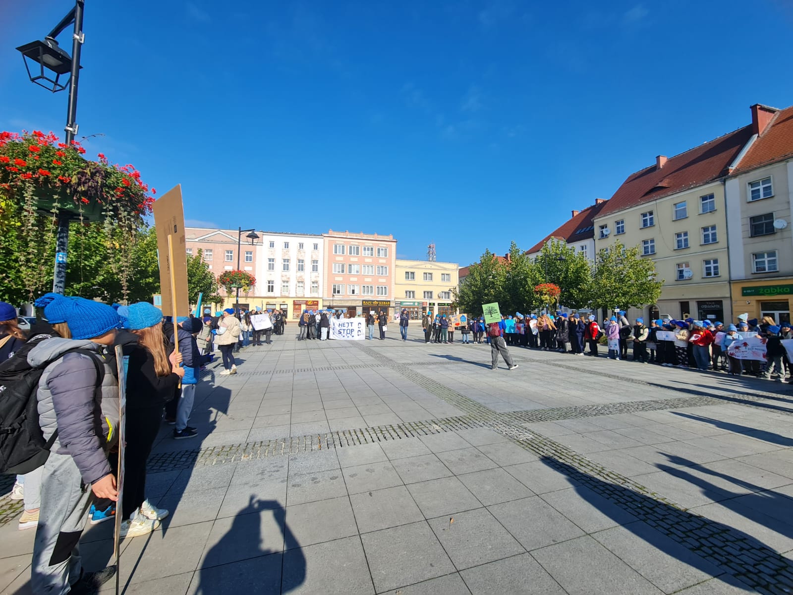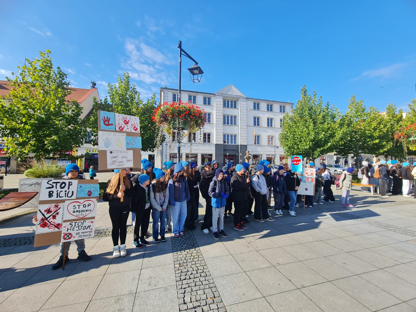 2 października uczniowie klas VI–VIII wzięli udział w przemarszu przeciwko agresji i przemocy w ramach akcji „Hat not hate”. Nasza szkoła uczestniczy w marszu od samego początku tej inicjatywy. Już podczas pierwszej edycji uczniowie własnoręcznie wykonali niebieskie czapki, które do dziś są znakiem rozpoznawczym akcji i symbolem sprzeciwu wobec przemocy. Marsz był wyrazem sprzeciwu wobec wszelkich przejawów przemocy rówieśniczej oraz apelem o budowanie relacji opartych na szacunku i przyjaźni.