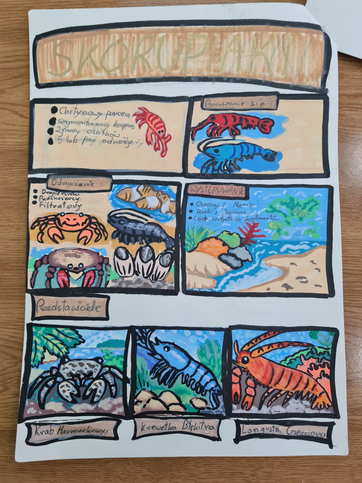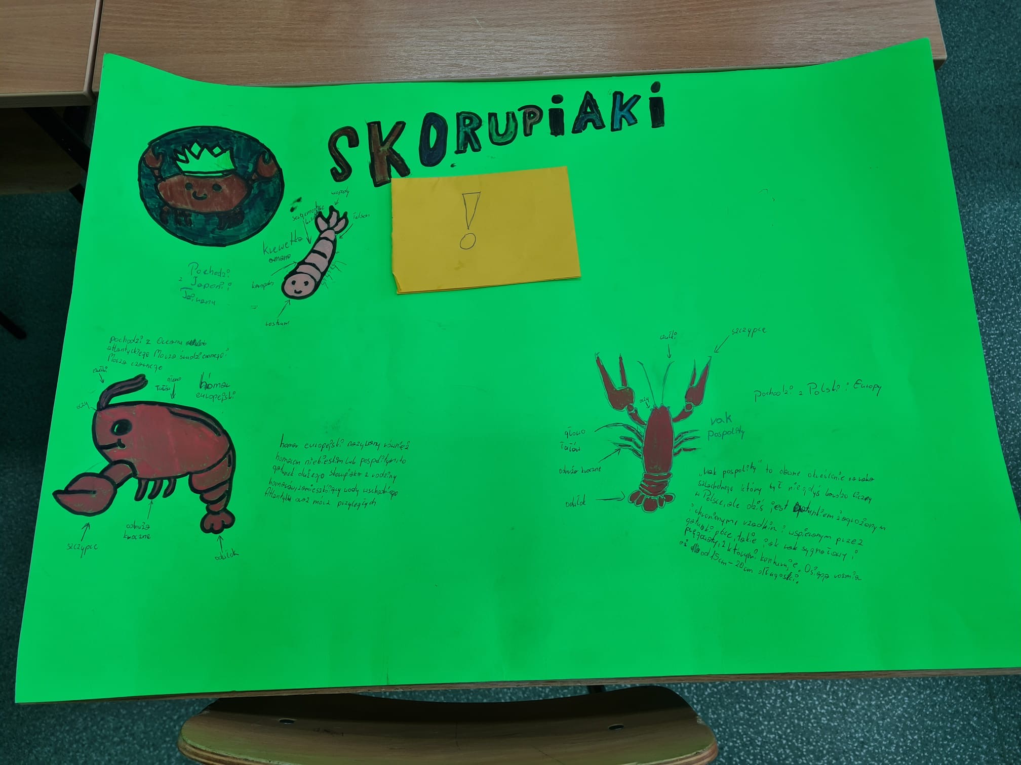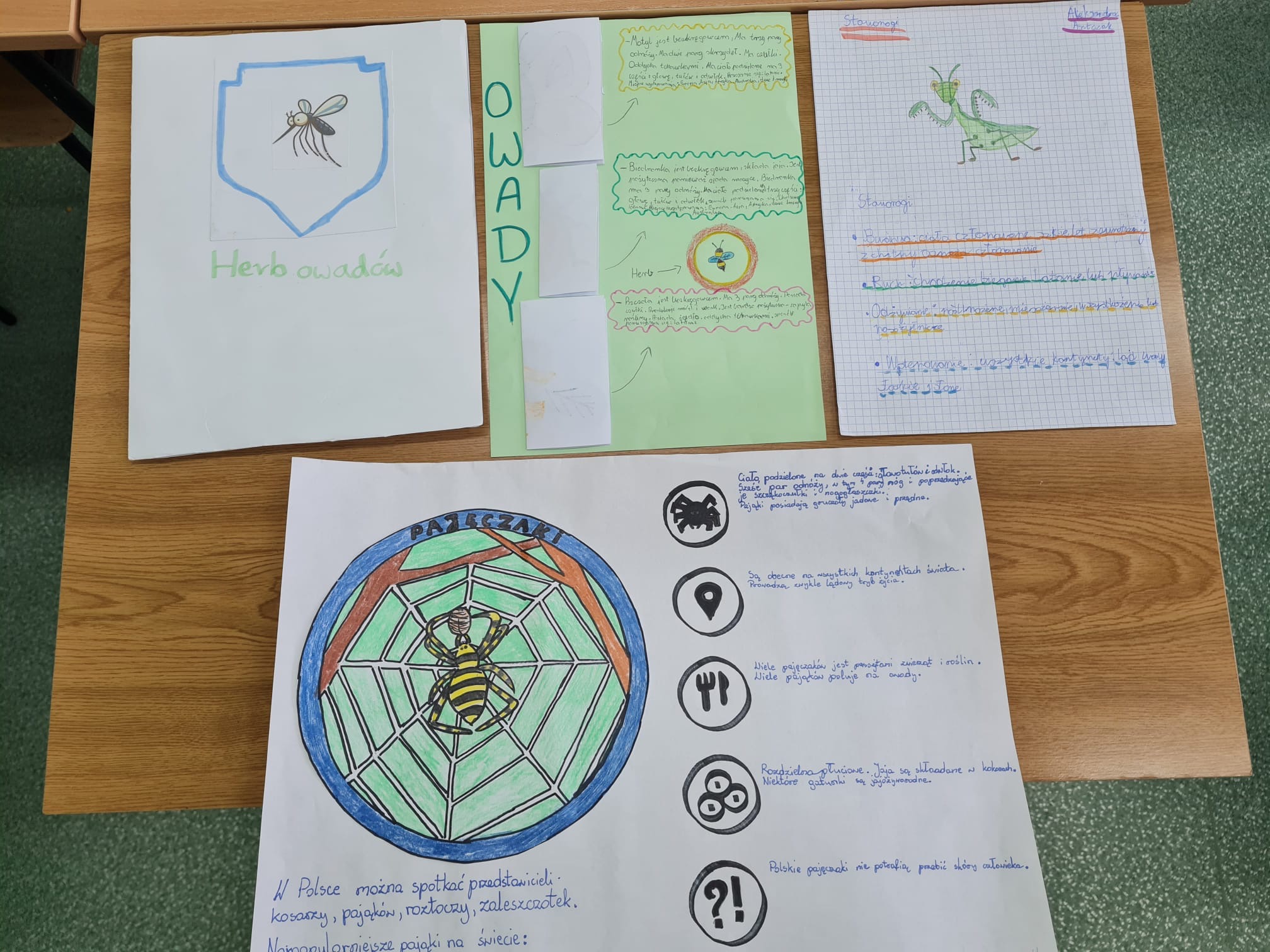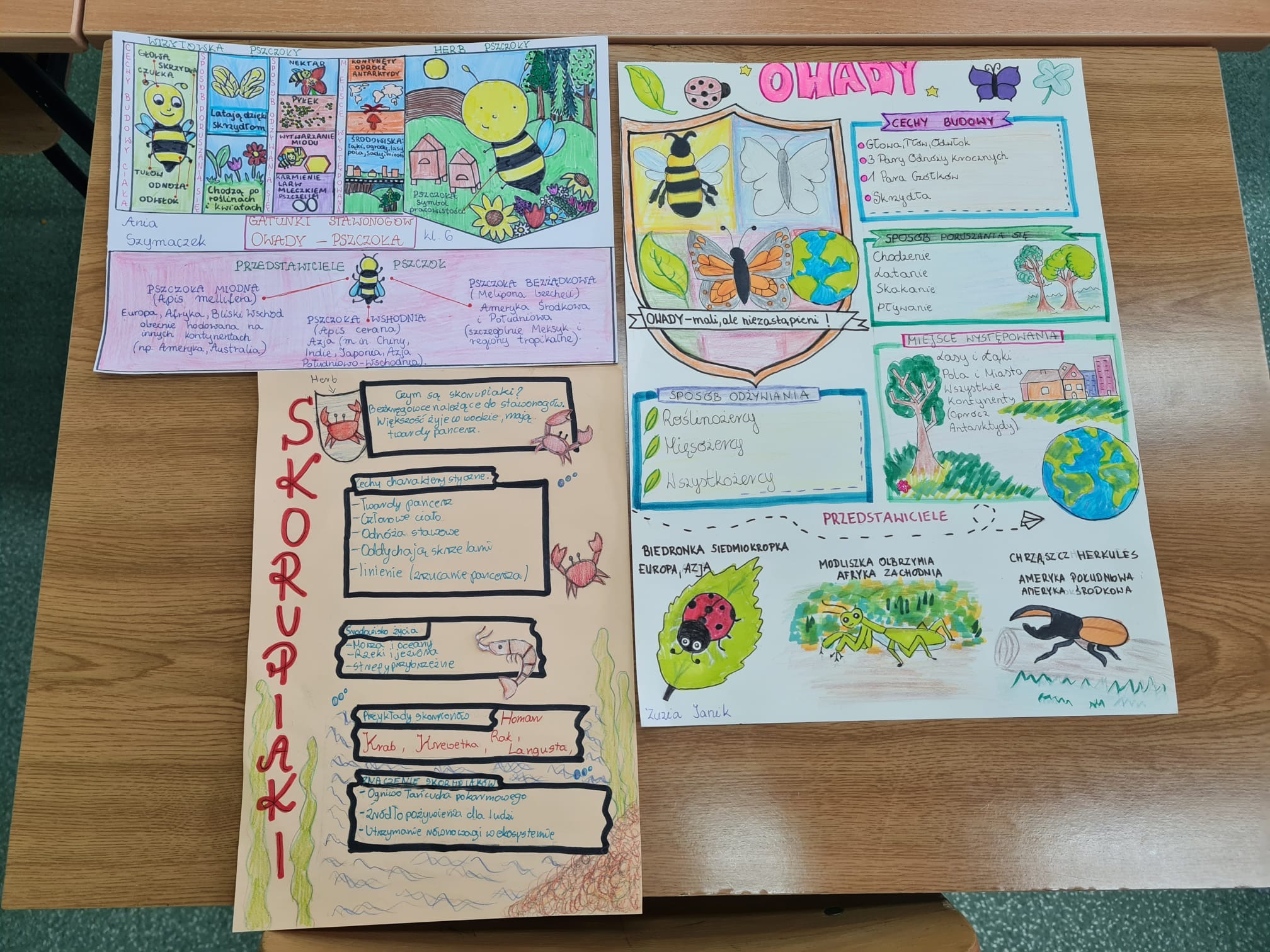 Drugi projekt poświęcony był stawonogom. Uczniowie zaprojektowali herb oraz wizytówkę wybranej gromady, uwzględniając jej cechy charakterystyczne, przedstawicieli i rolę w przyrodzie.