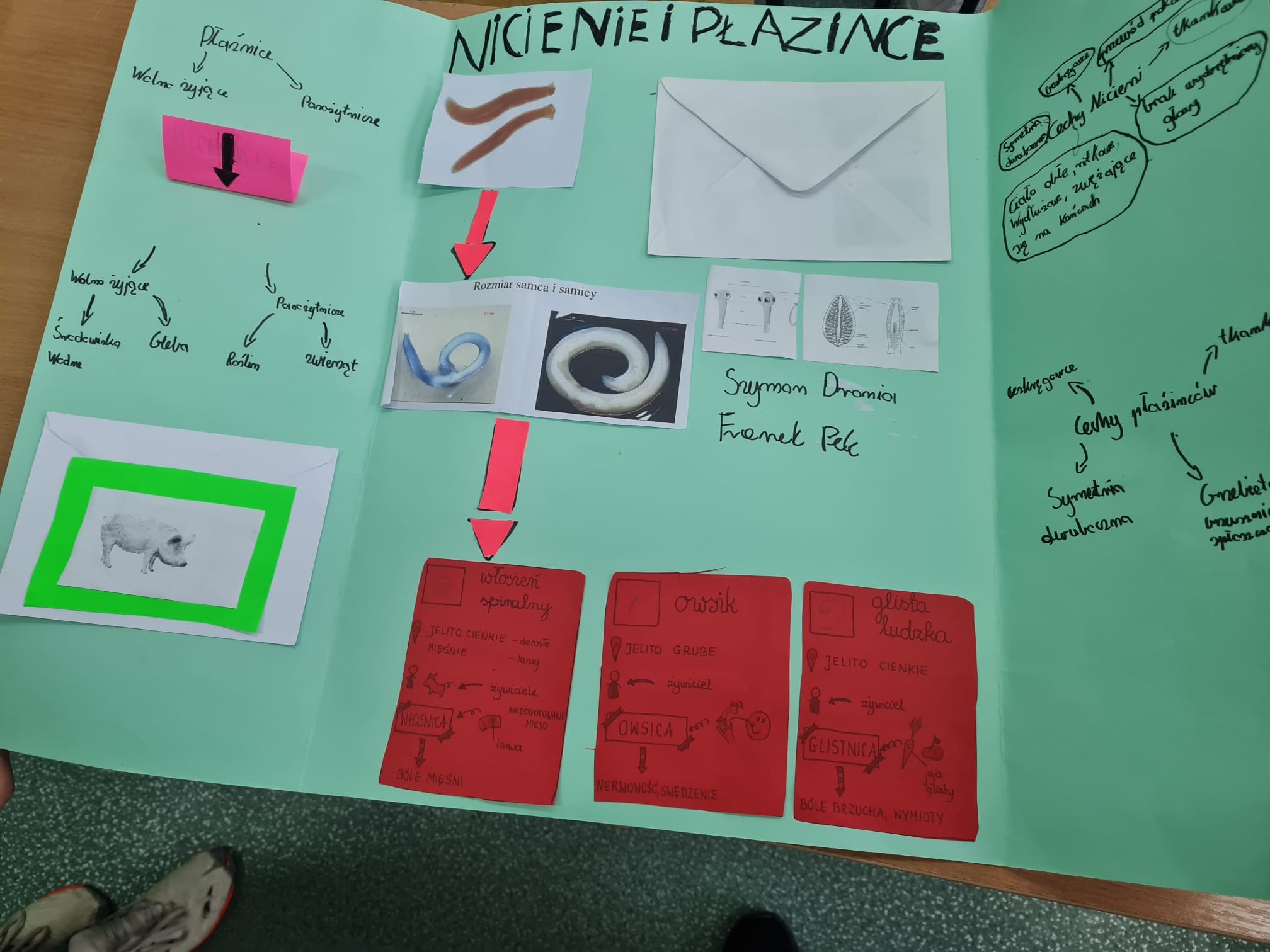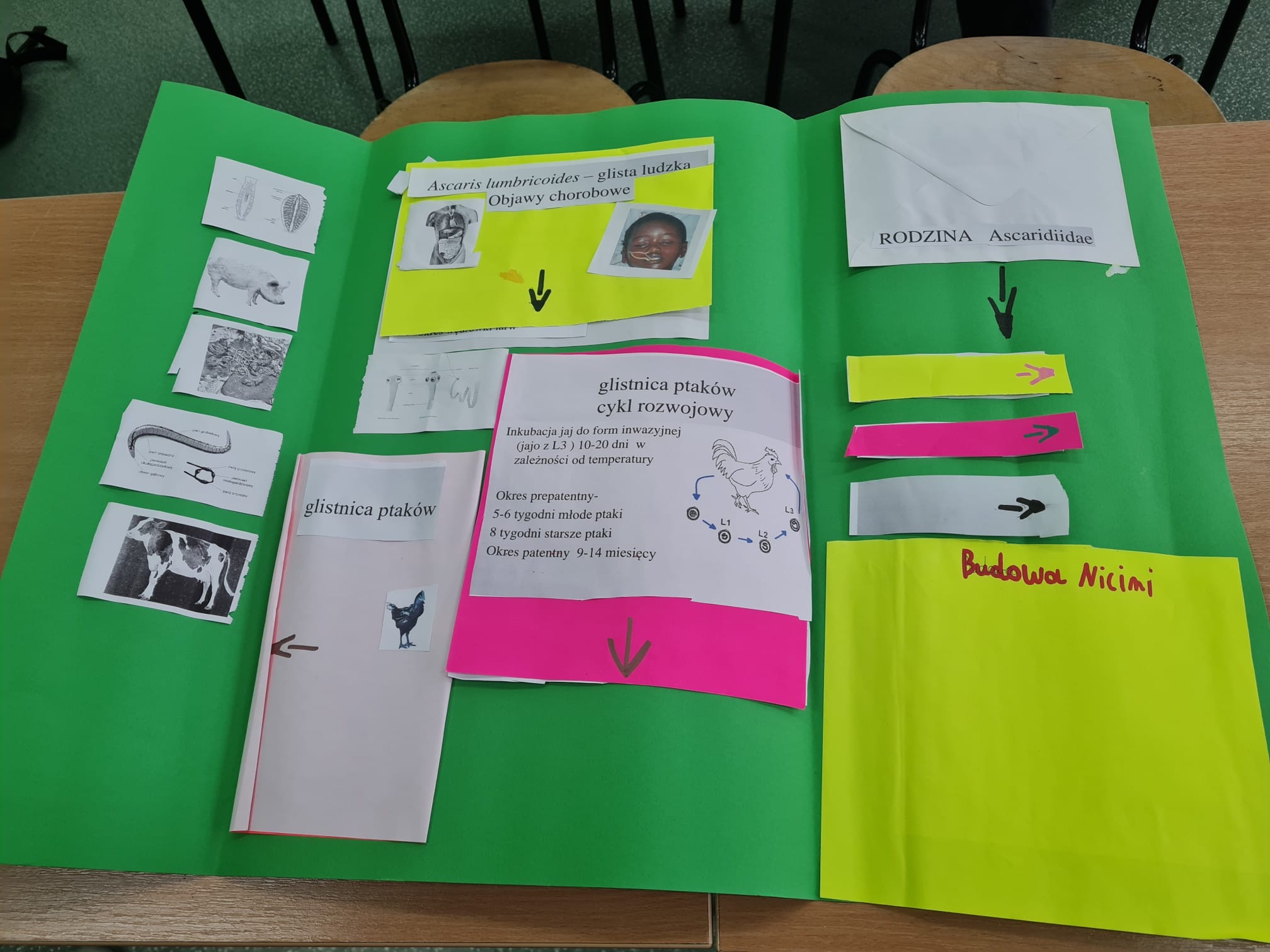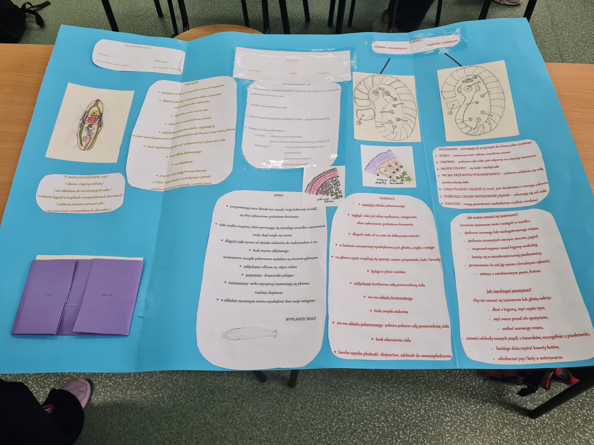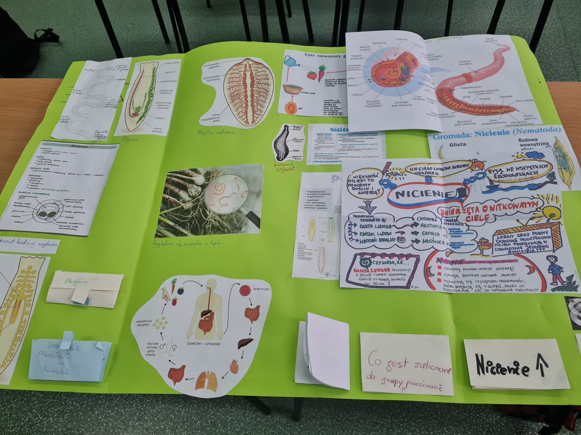 Pierwszy projekt dotyczył płazińców, nicieni i pierścienic. Zadaniem uczniów było wykonanie lapbooków, w których w atrakcyjny i uporządkowany sposób przedstawili budowę, środowisko życia, znaczenie oraz ciekawostki dotyczące tych grup zwierząt.