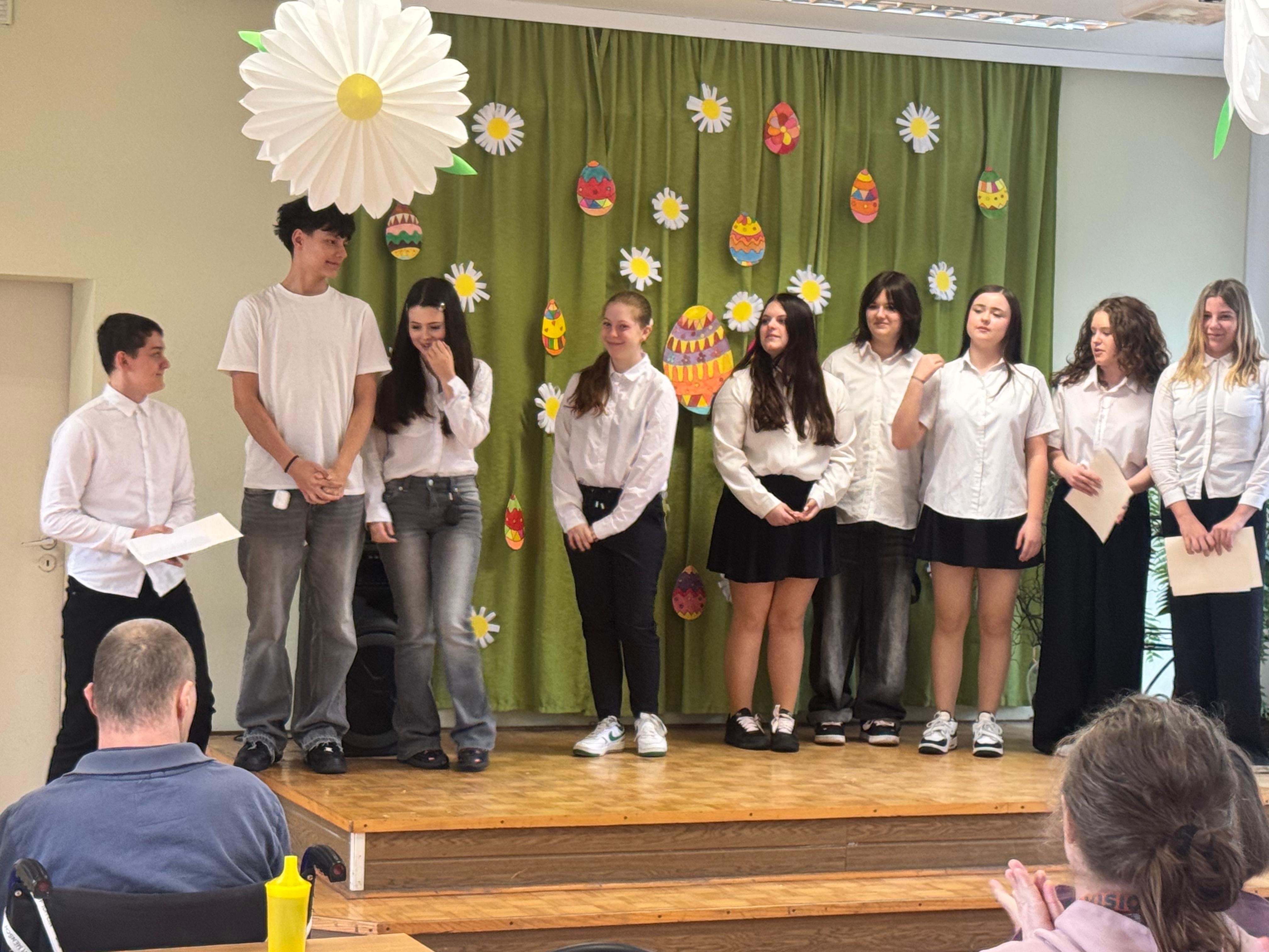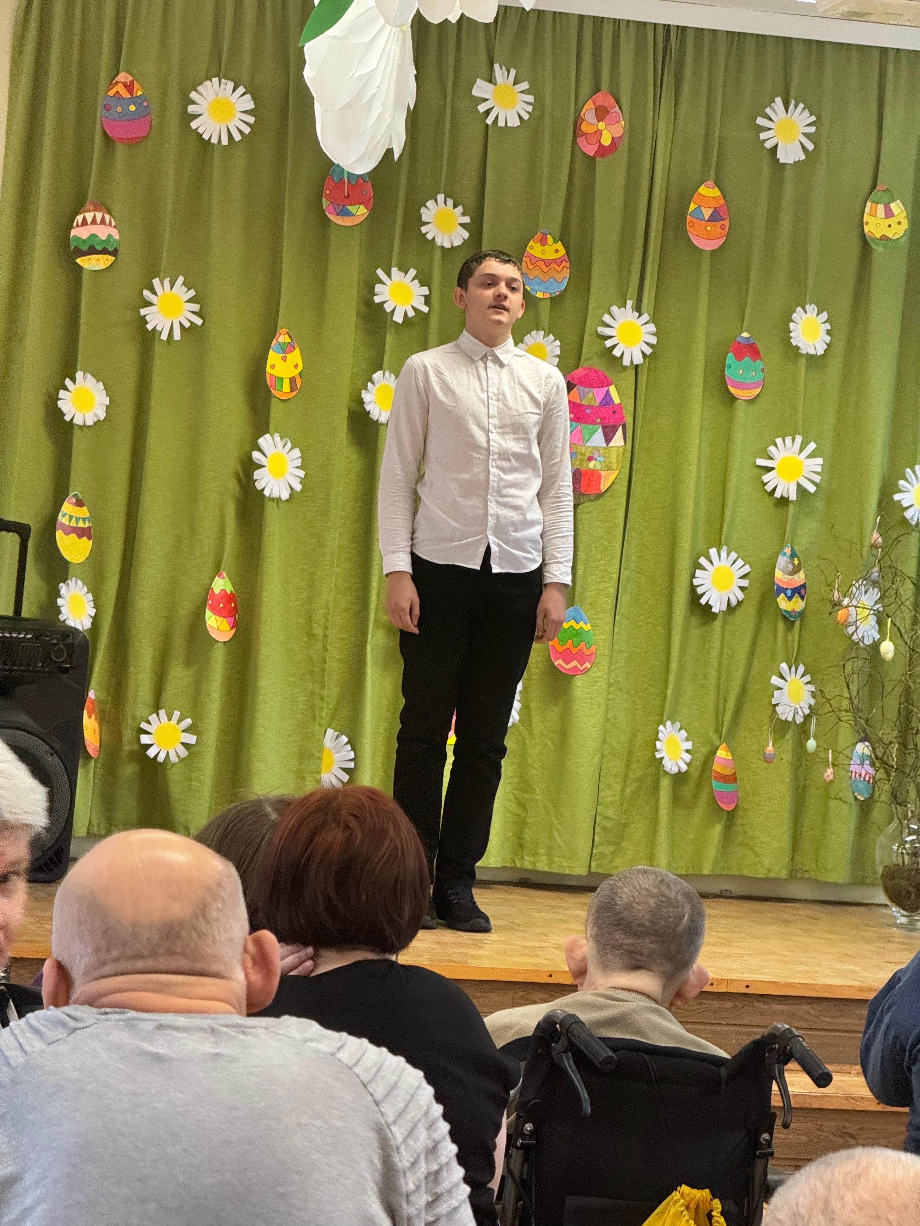 Podczas wizyty uczniowie zaprezentowali „Inwokację” z „Pana Tadeusza”, wykazując się dużym zaangażowaniem oraz wrażliwością artystyczną. Występ został bardzo ciepło przyjęty przez mieszkańców placówki i nagrodzony gromkimi brawami.