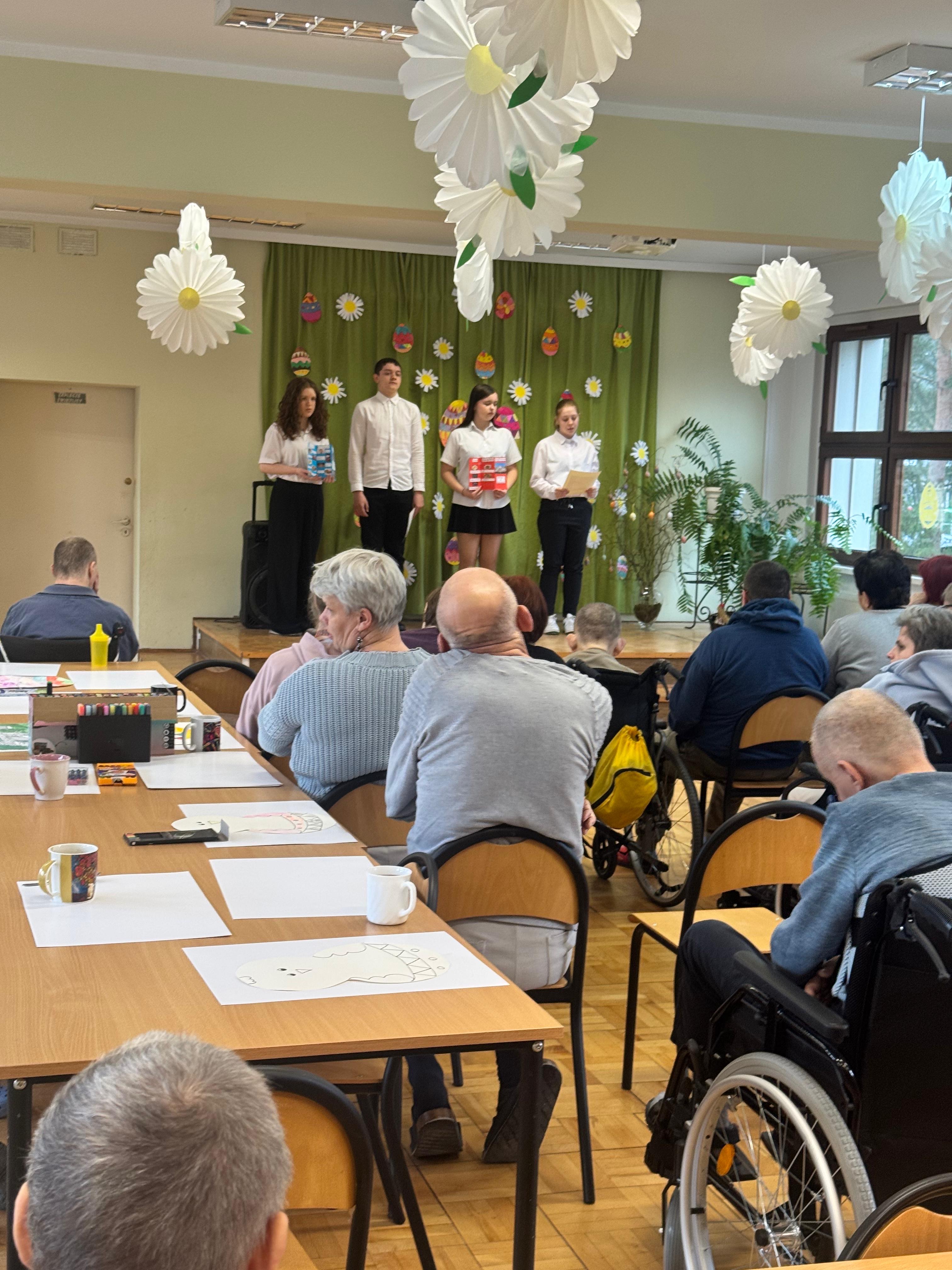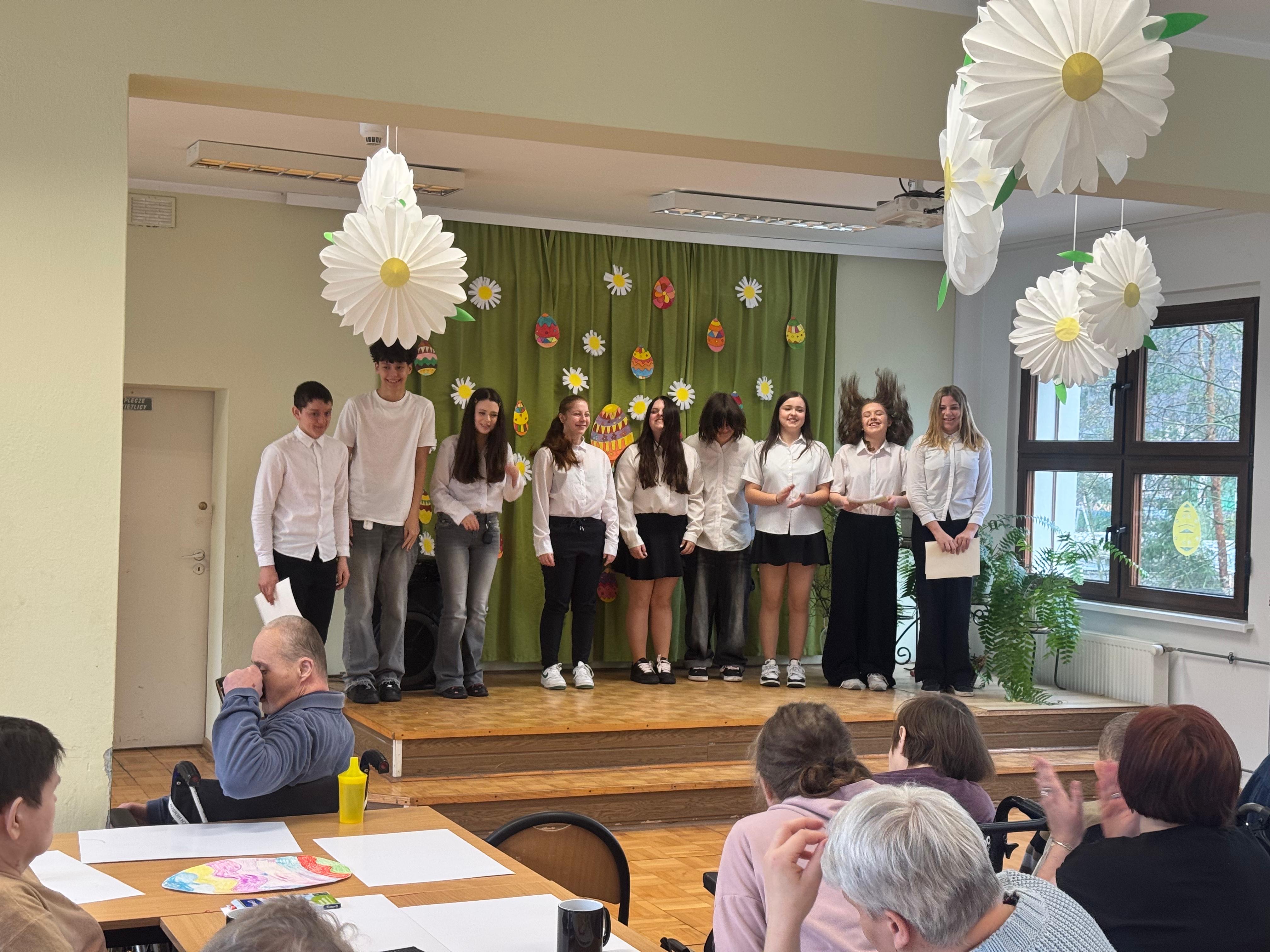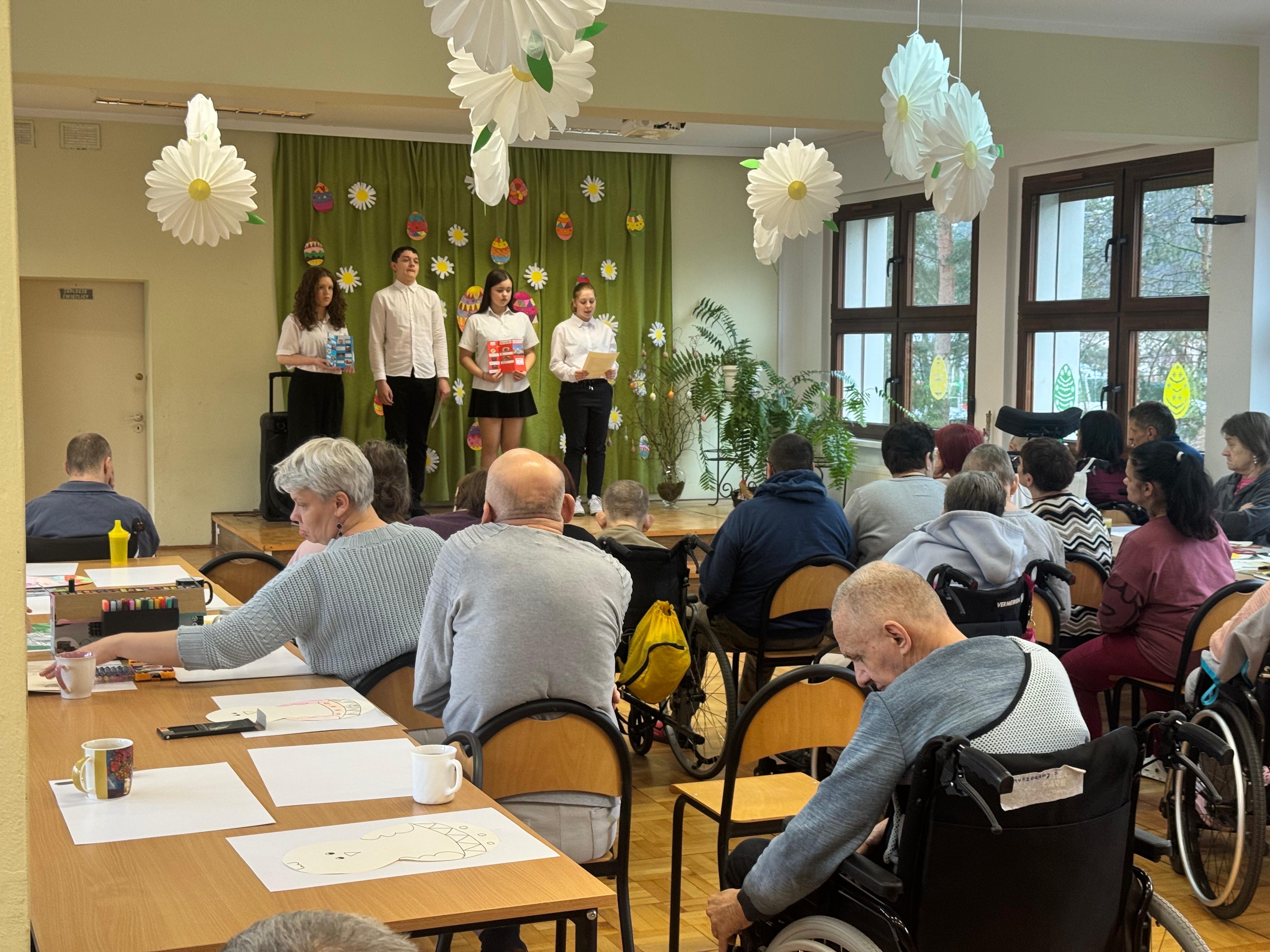Dnia 31.03.2026r wolontariusze z klasy 8 naszej szkoły wraz z opiekunami wybrali się do Domu Pomocy Społecznej w Sławięcicach,. Wyjazd ten stał się okazją do spotkania międzypokoleniowego, pełnego życzliwości, wzruszeń i wielkanocnej atmosfery.