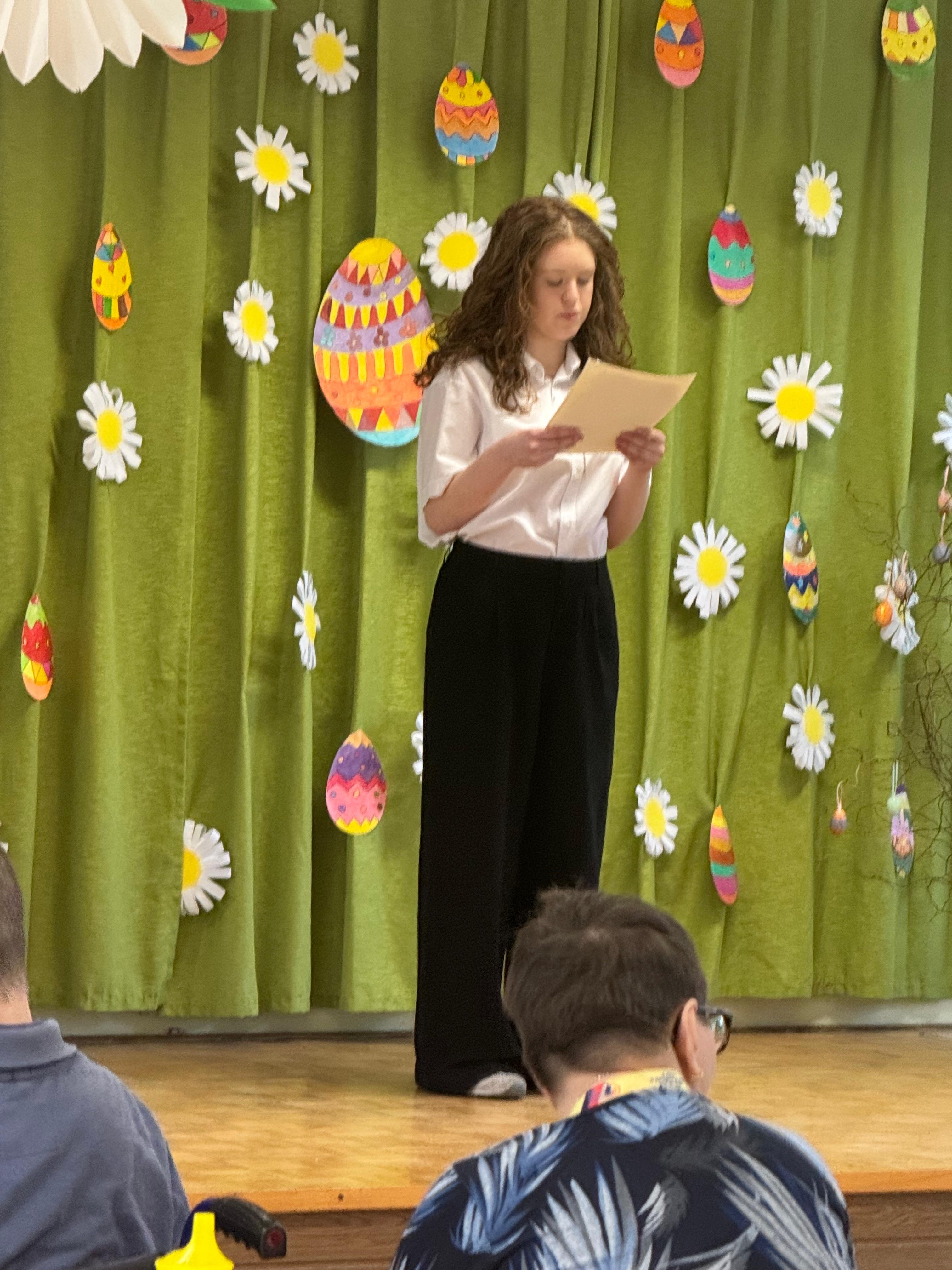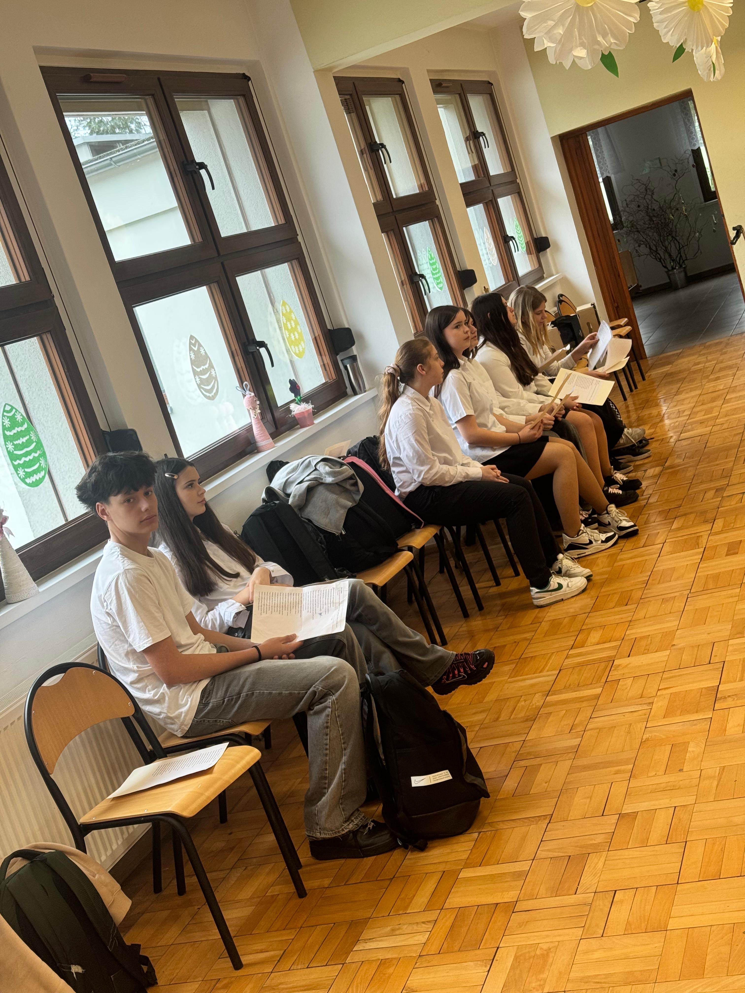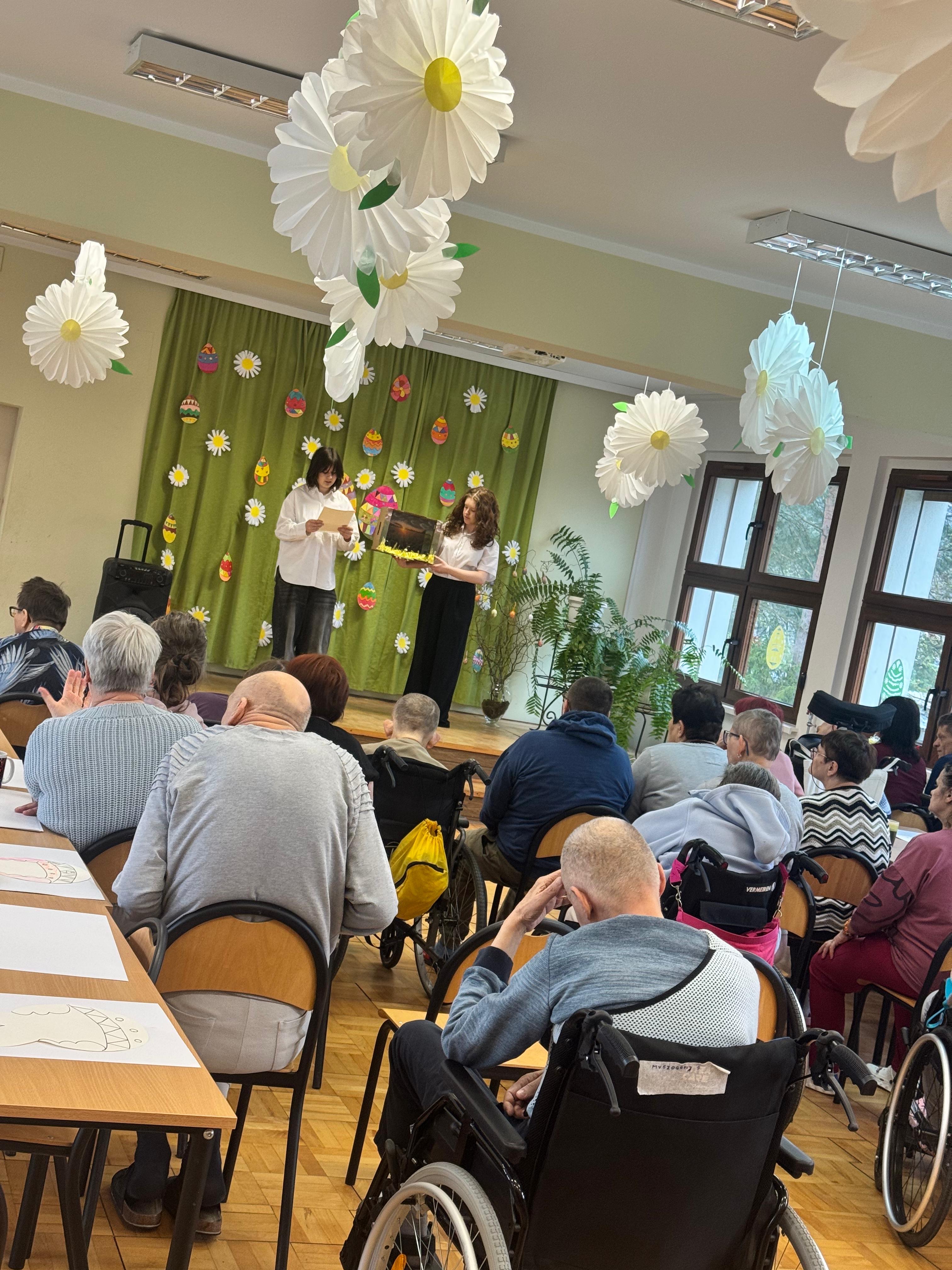 Dnia 31.03.2026r wolontariusze z klasy 8 naszej szkoły wraz z opiekunami wybrali się do Domu Pomocy Społecznej w Sławięcicach,. Wyjazd ten stał się okazją do spotkania międzypokoleniowego, pełnego życzliwości, wzruszeń i wielkanocnej atmosfery.