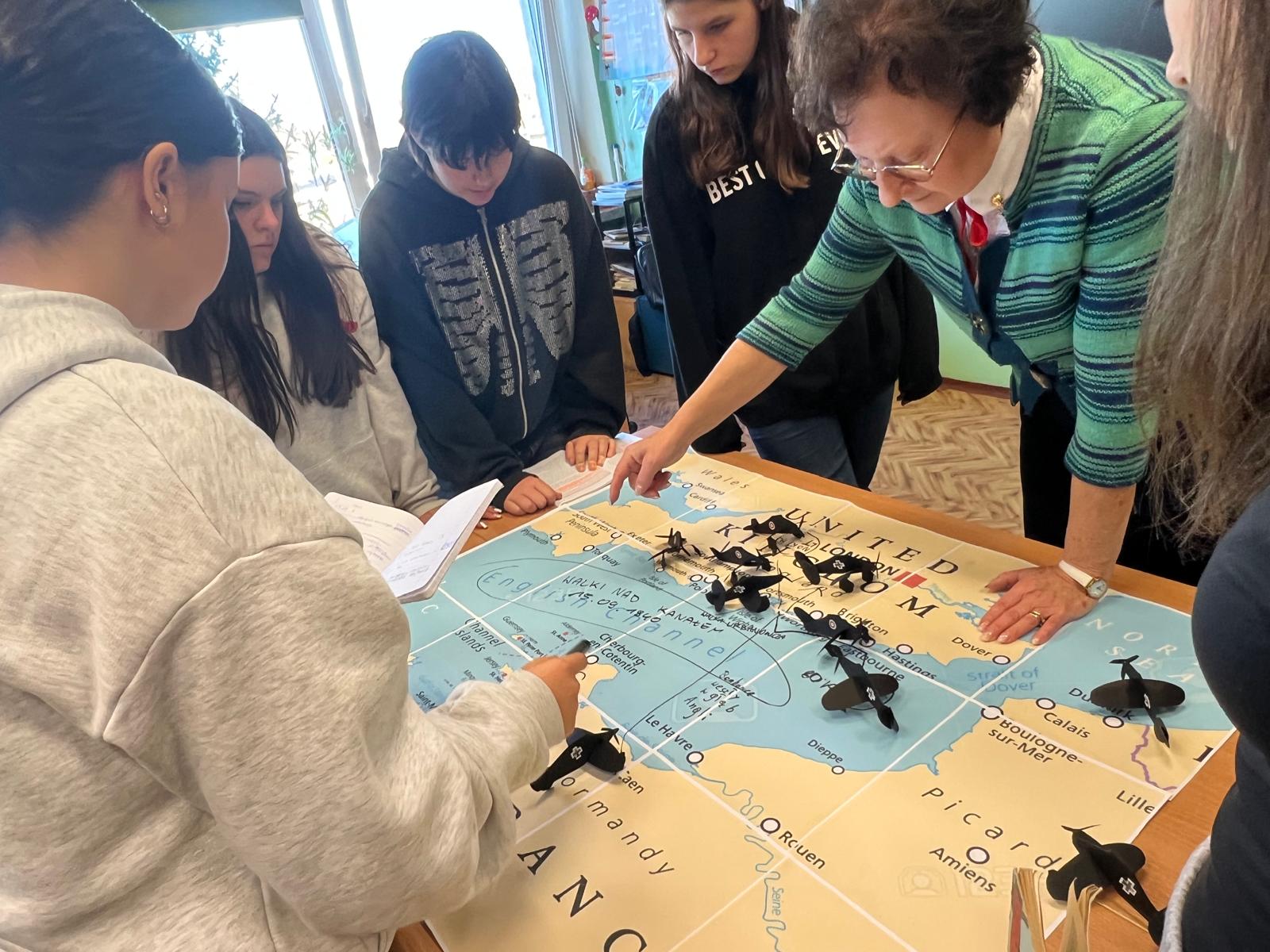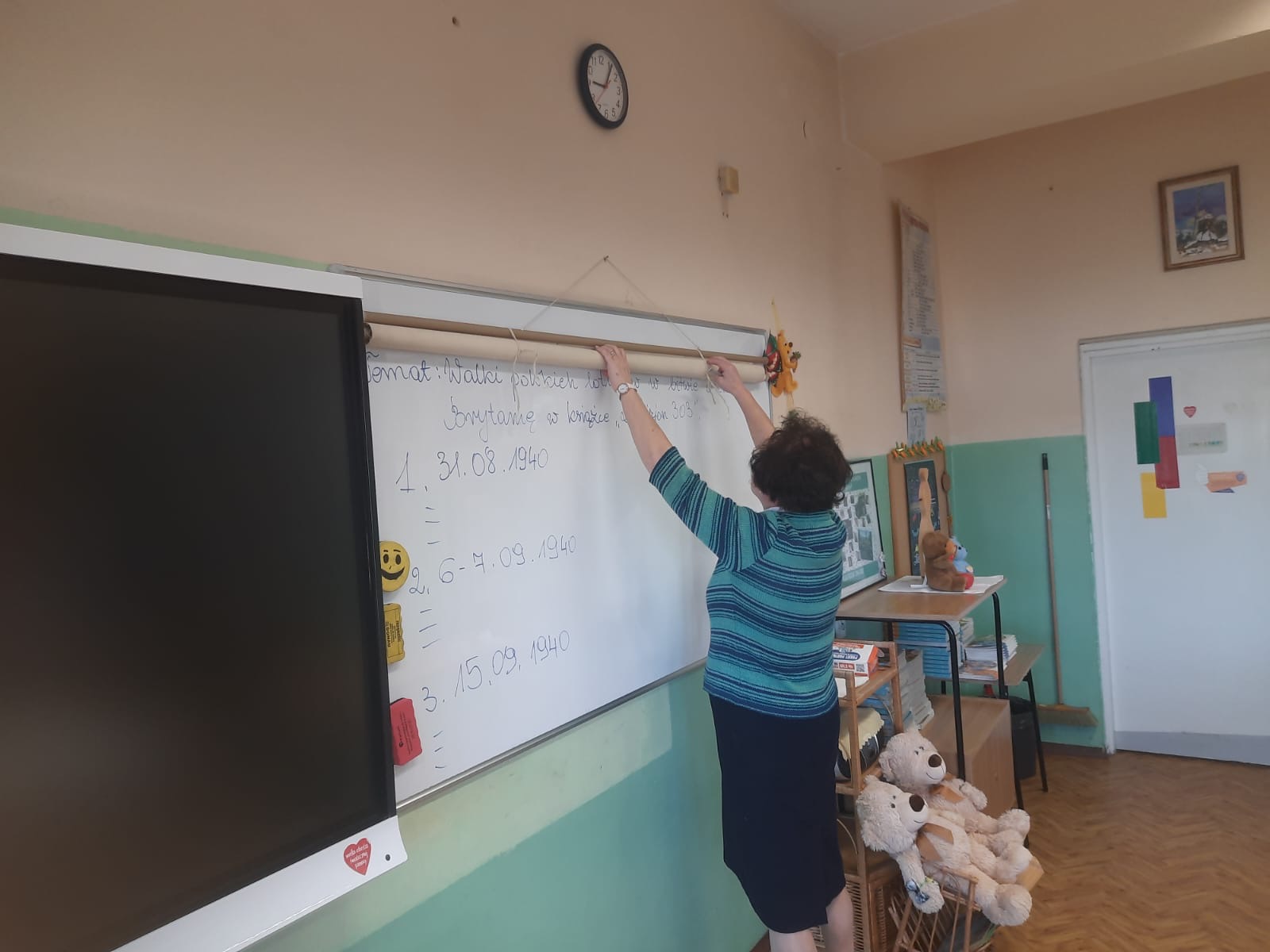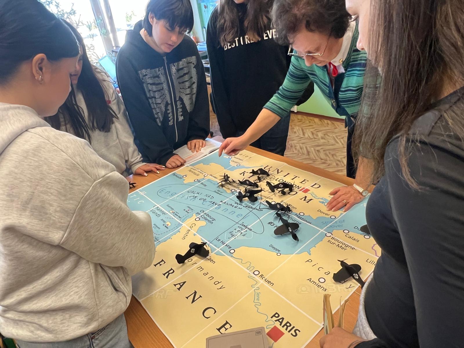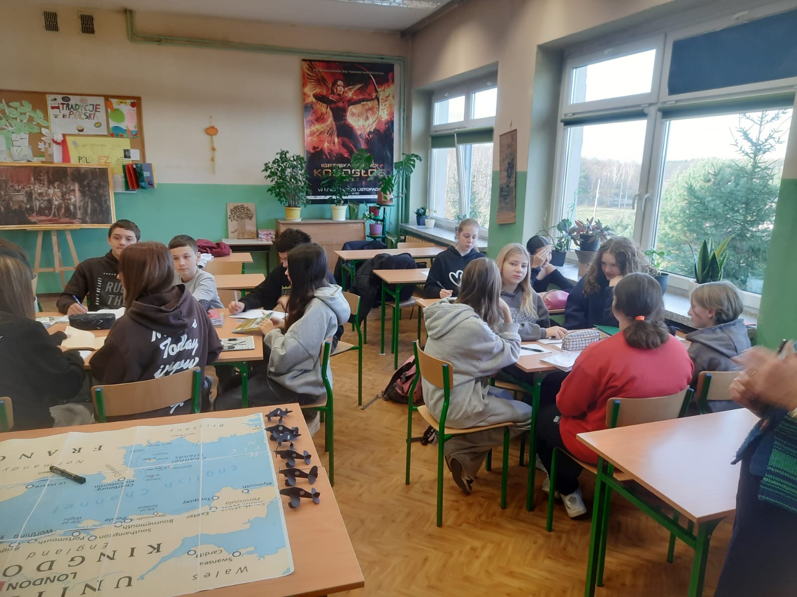 Lekcja, inspirowana treścią lektury „Dywizjon 303” Arkadego Fiedlera, wprowadziła uczniów w realia II wojny światowej poprzez aktywne działania na mapie. Młodzież zapoznała się szczegółowo z niemieckimi planami ataku na Anglię oraz z osiągnięciami polskich pilotów, którzy zasłynęli niezwykłą odwagą, umiejętnościami lotniczymi i skutecznością w walce.