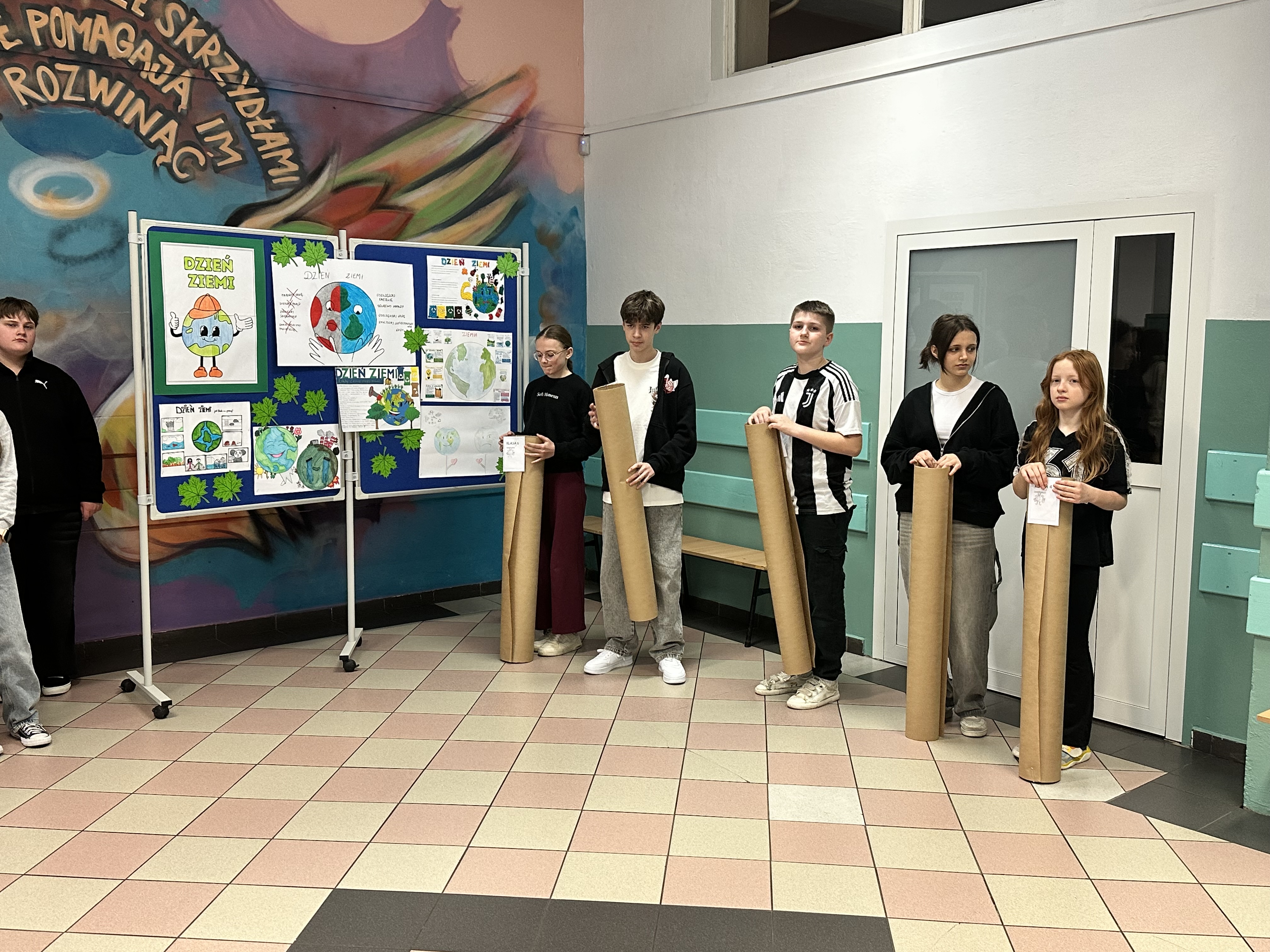 W dniu dzisiejszym rozpoczęliśmy obchody Dnia Ziemi, które miały wyjątkowo aktywny i twórczy charakter. Głównym punktem wydarzenia był turniej wiedzy ekologicznej, w którym uczniowie mogli sprawdzić swoją wiedzę na temat ochrony środowiska, zmian klimatycznych oraz sposobów dbania o naszą planetę. Rywalizacja przebiegała w przyjaznej atmosferze, a uczestnicy wykazali się dużym zaangażowaniem i imponującą wiedzą.