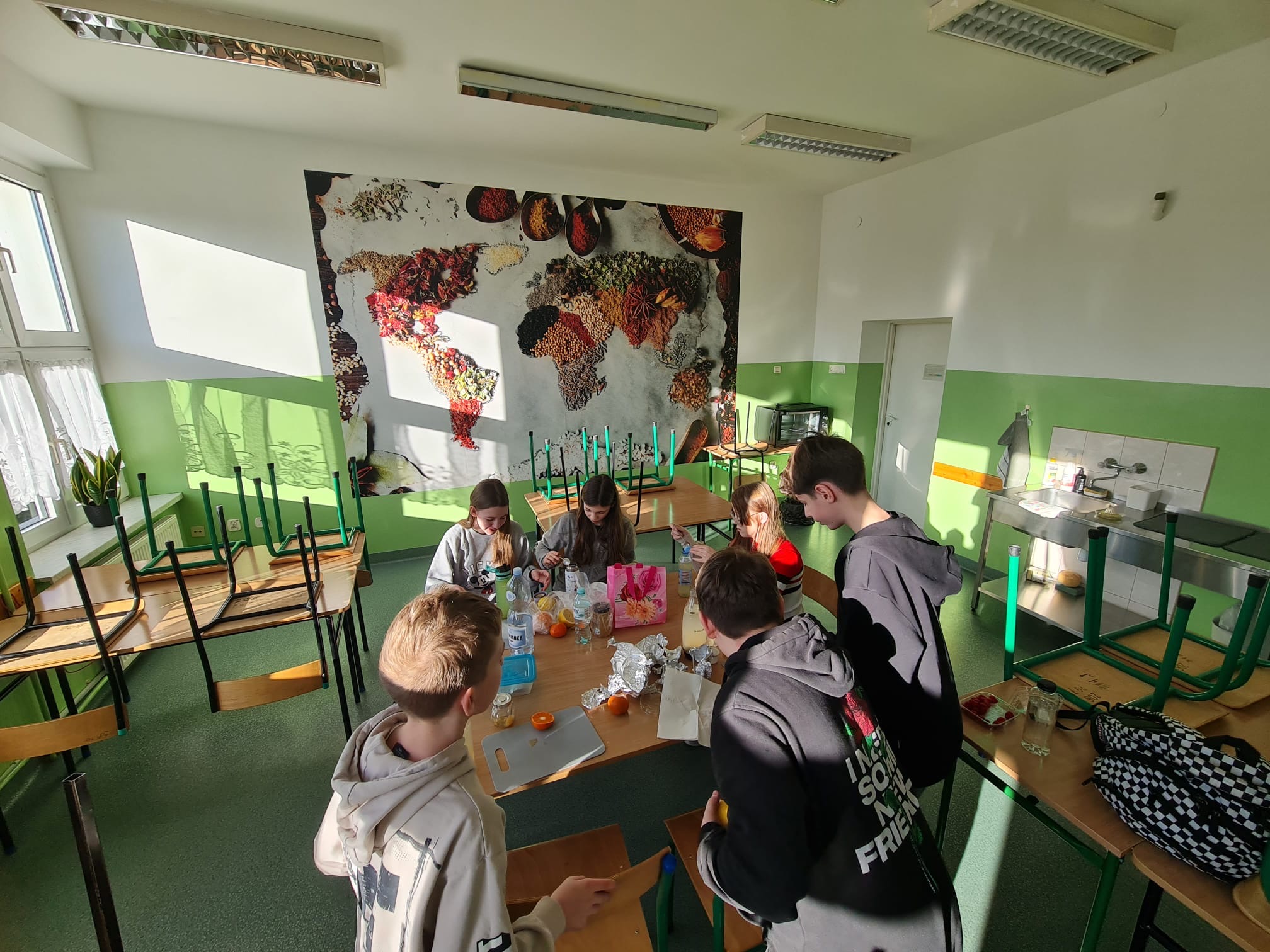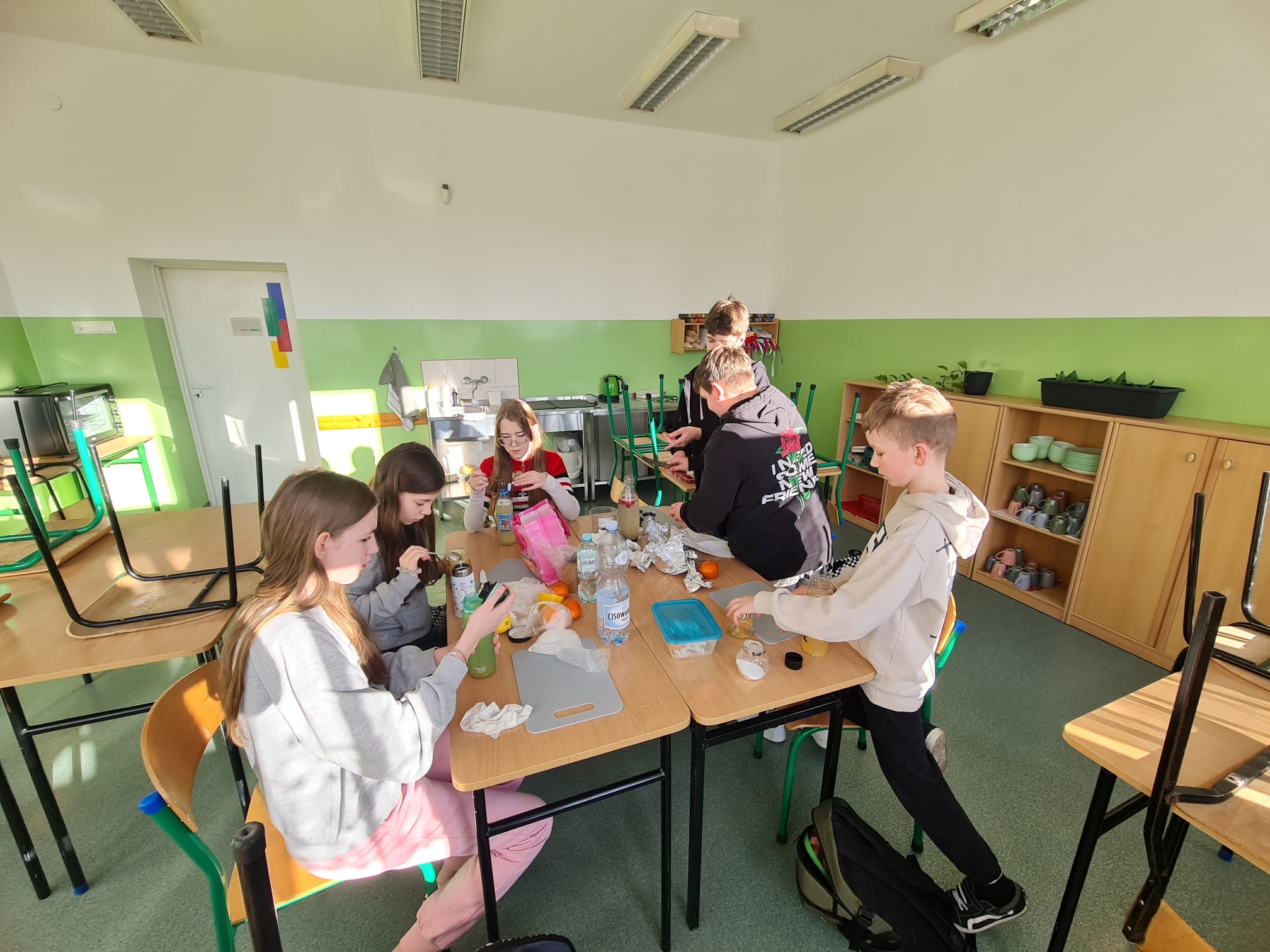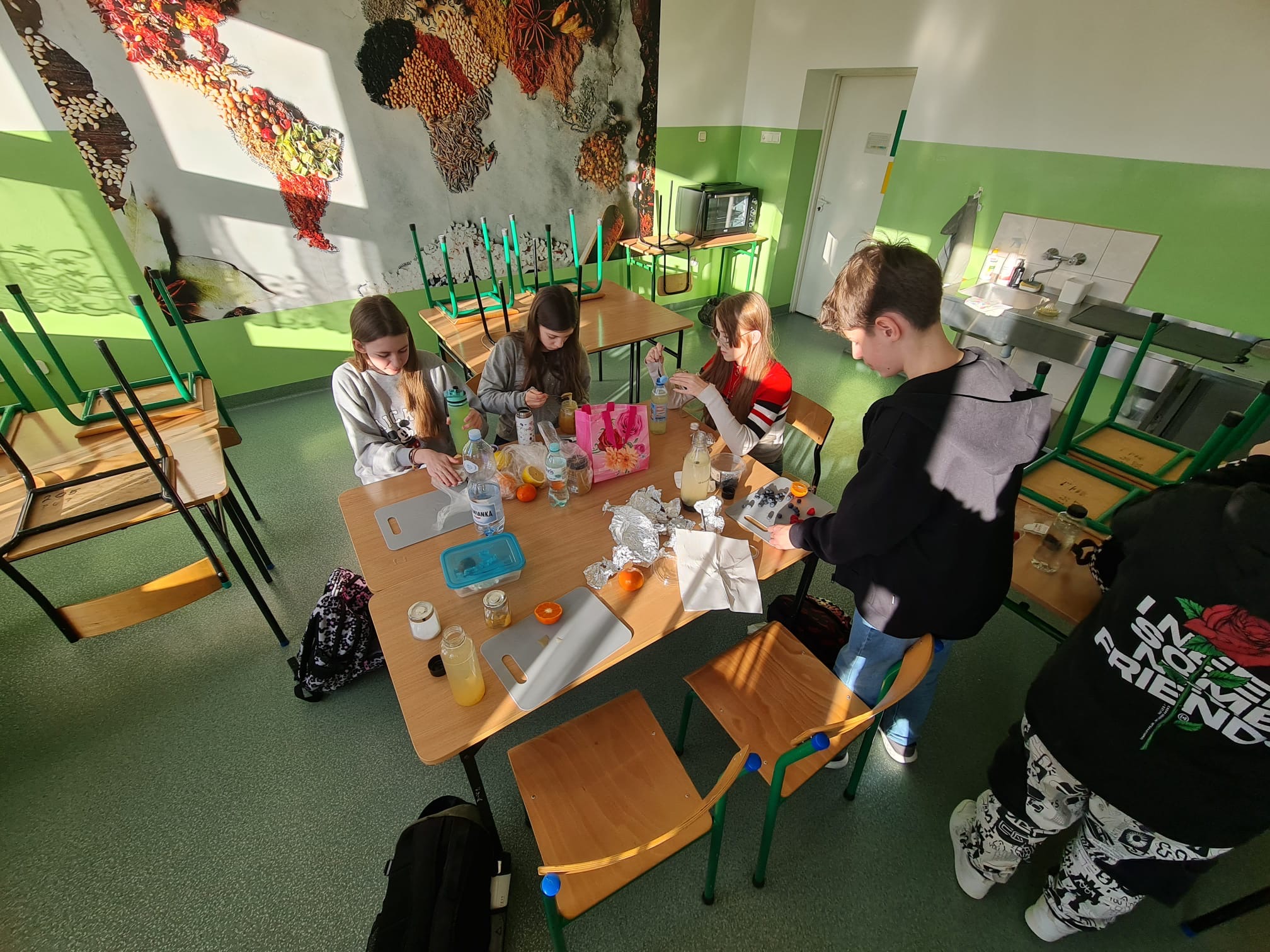 Uczniowie klasy VII w ramach zajęć z edukacji zdrowotnej wzięli udział w praktycznych warsztatach, podczas których samodzielnie przygotowywali własne napoje izotoniczne. Zajęcia miały na celu pokazanie, jak w prosty i świadomy sposób można zadbać o odpowiednie nawodnienie organizmu, szczególnie podczas wysiłku fizycznego.